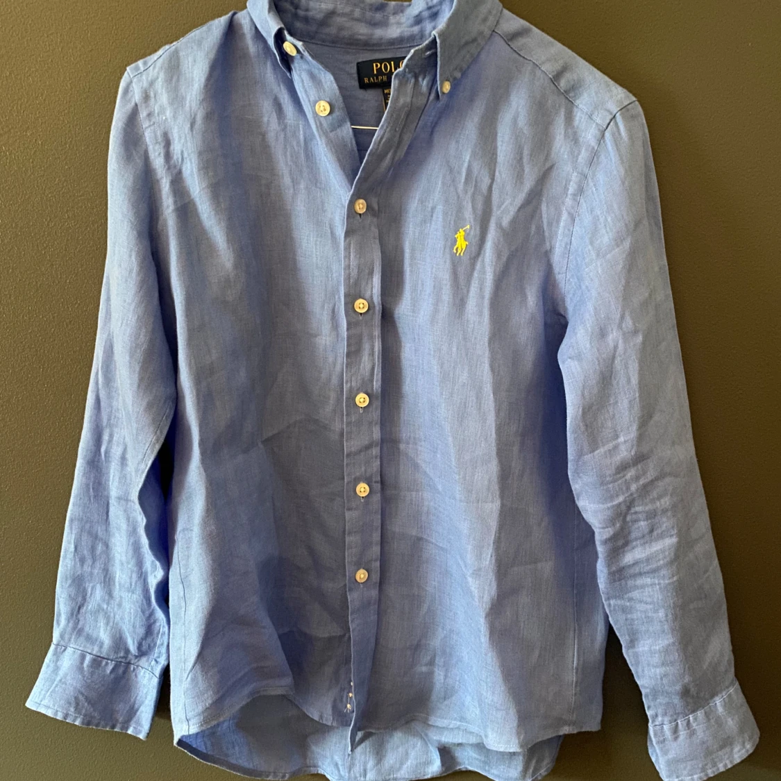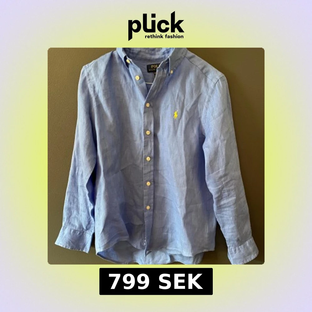 Snygg blå skjorta från Polo Ralph Lauren med klassisk button-down krage och gul broderad logga på bröstet. Skjortan har långa ärmar, vita knappar och är tillverkad i mjukt linne. Perfekt för dig som gillar stilrena och tidlösa plagg. Ny pris 1299