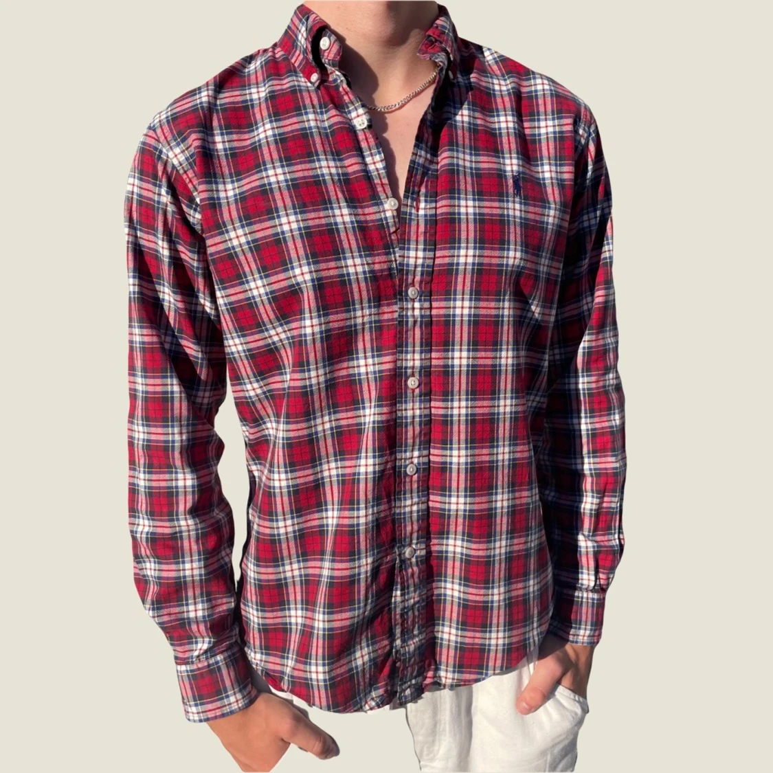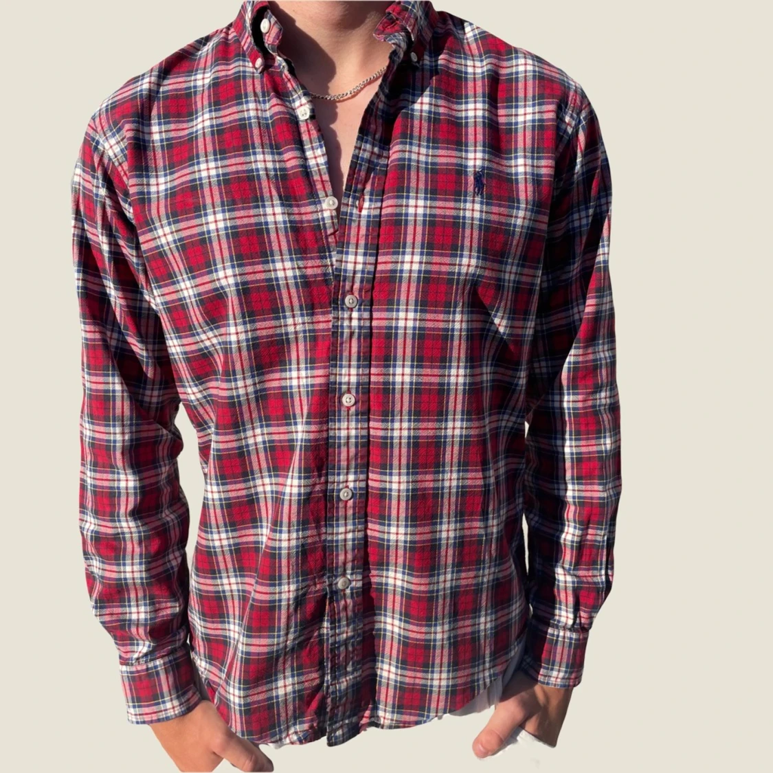 Sjukt snygg rutig Ralph lauren skjorta. Skjortan är i storlek M. Fint skick! Modellen på bilden är 183. Fråga gärna vid funderingar!