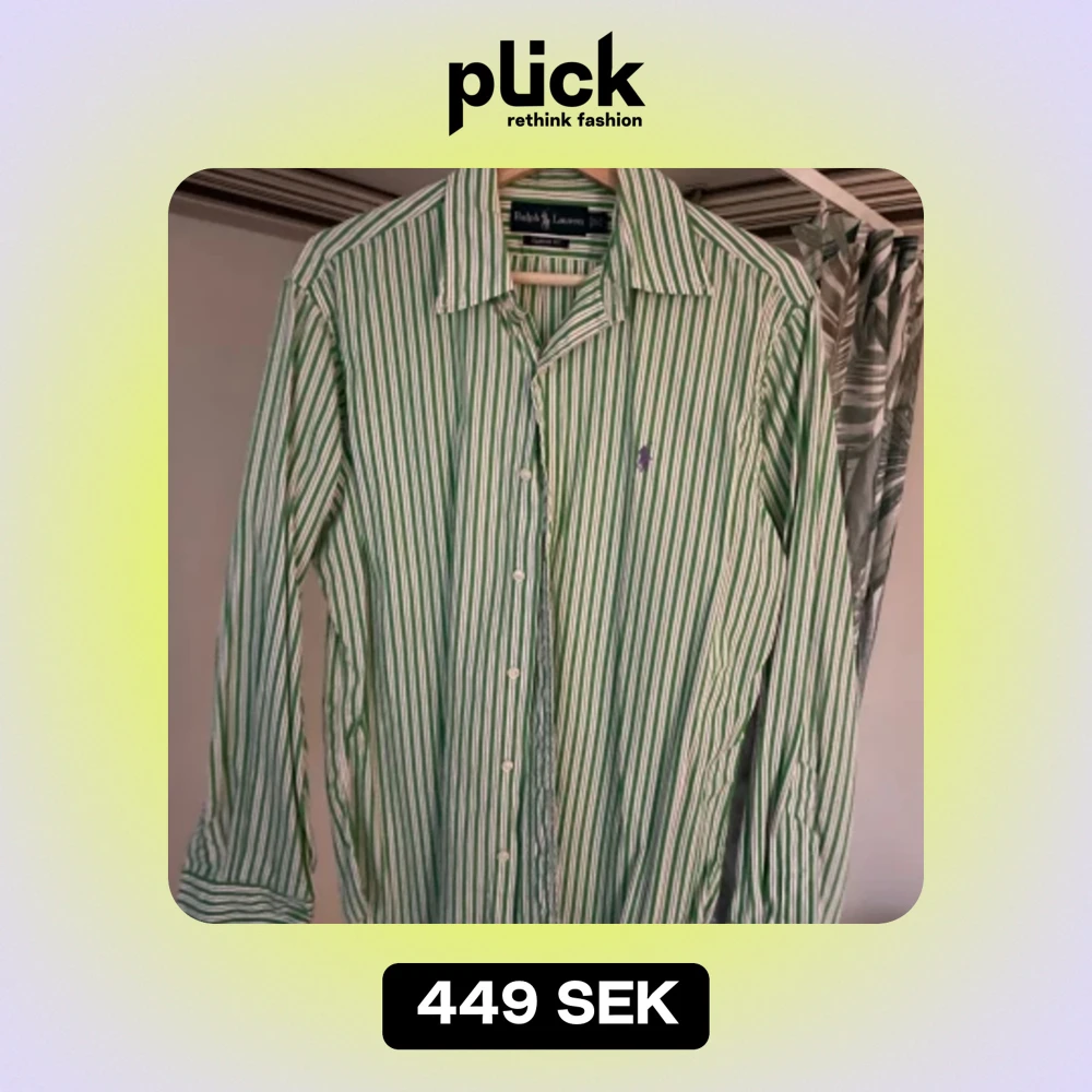 Storlek Medium, Vit med gröna ränder. Väldigt fint skick på skjortan men används ej av mig.