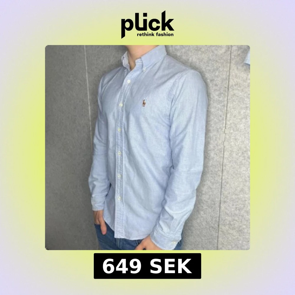 Säljer en stilren ljusblå skjorta från Ralph Lauren i slim fit. Skjortan har klassisk button down-krage, broderad logga på bröstet och vita knappar. Tillverkad i mjuk bomull och passar perfekt till jeans eller chinos.
