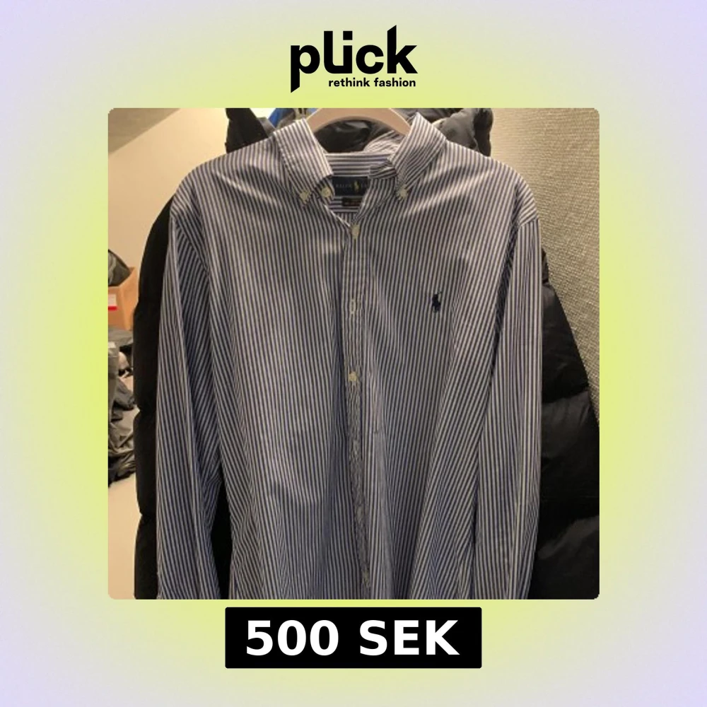 Snygg blå- och vitrandig skjorta från Ralph Lauren i slim fit. Skjortan är tillverkad i bomull med stretch och har en broderad logotyp på bröstet. Perfekt för en stilren look.ny pris 1800kr mitt pris 499kr