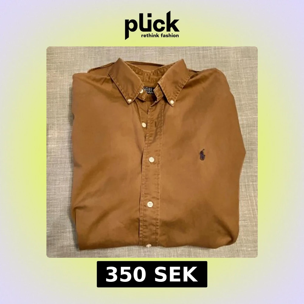 Snygg brun skjorta från Polo Ralph Lauren med klassisk krage och knappar framtill. Skjortan har lång ärm och det ikoniska Polo-logot broderat i blått på bröstet. Skjortan är oversized, snarare Large än Medium. Se mått på bild. Obs, bilderna med mått visar tvillingskjorta i annan färg.