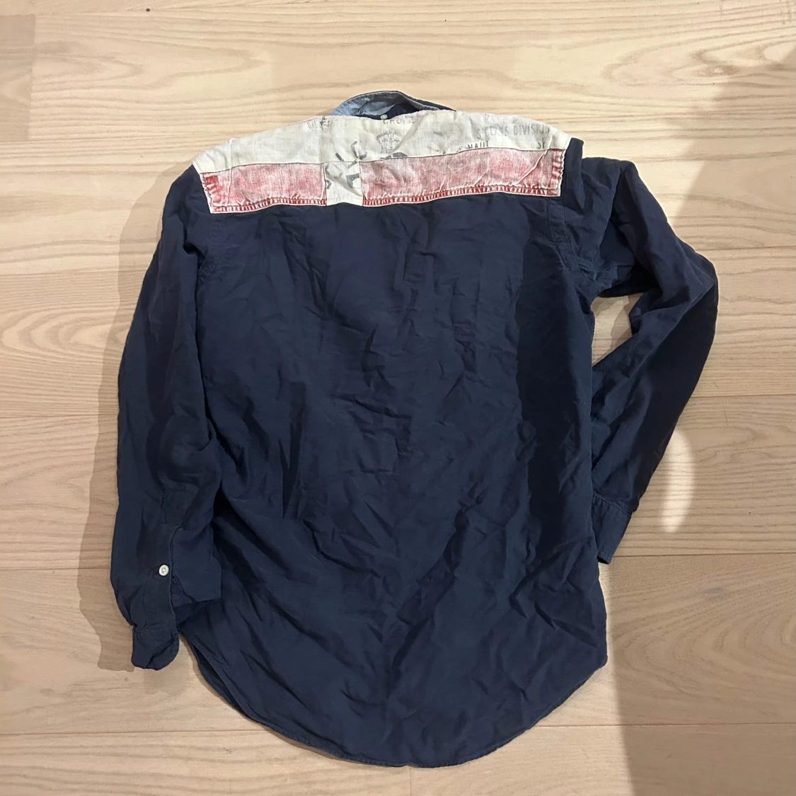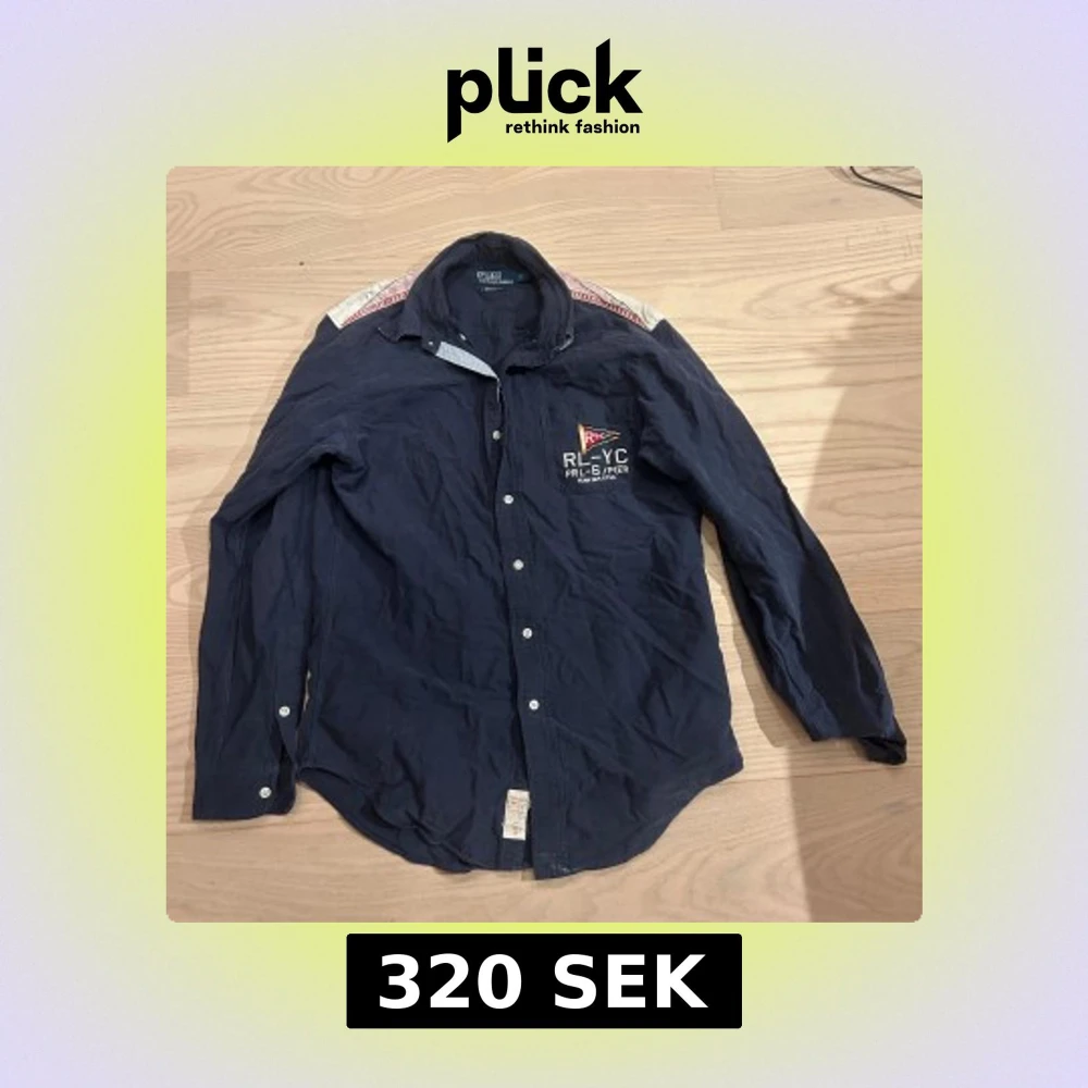 Mörkblå skjorta från Polo Ralph Lauren med broderad RL-YC logga och flagga på bröstet. Skjortan har vita knappar, lång ärm och kontrastpanel i vitt och rött över axlarna. Klassisk krage och avslappnad passform. Perfekt för en cool och sportig look.