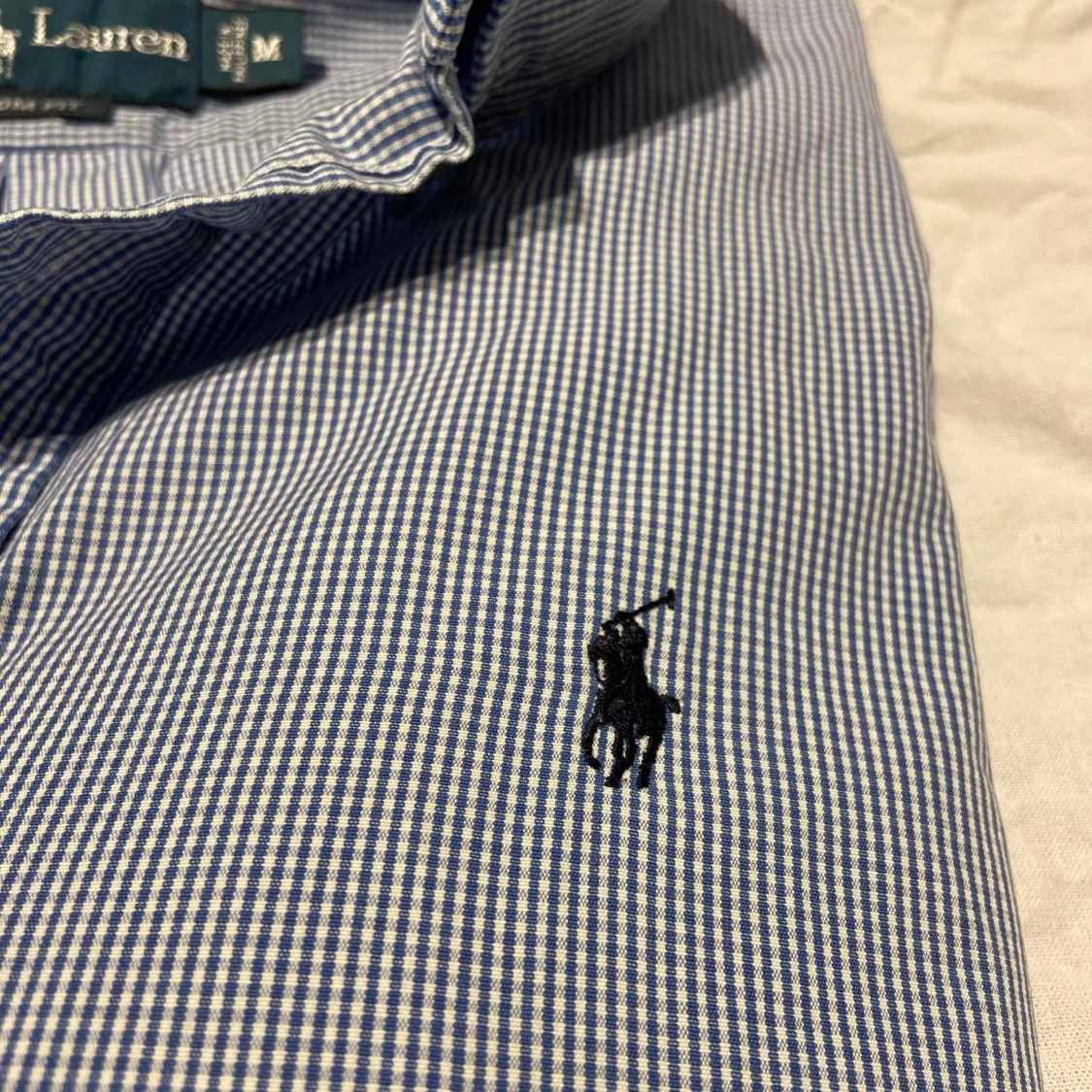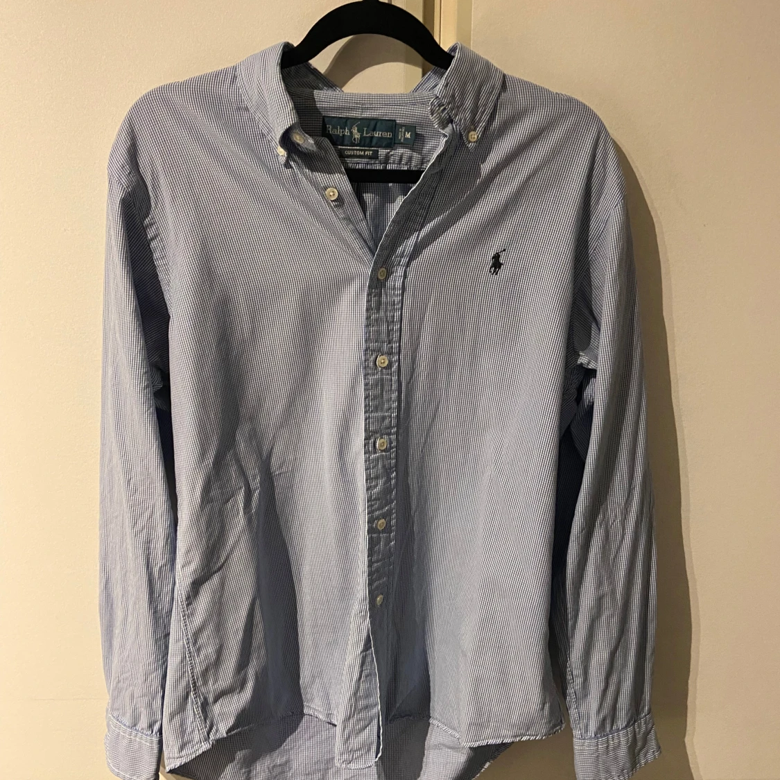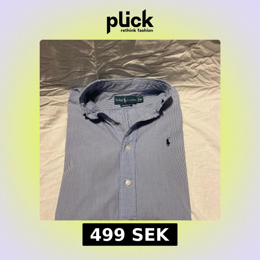 Klassisk blårutig skjorta från Ralph Lauren i custom fit. Skjortan har button down-krage, broderad logga på bröstet och vita knappar. Storlek M, perfekt nu för sommaren, hör av er vid frågor