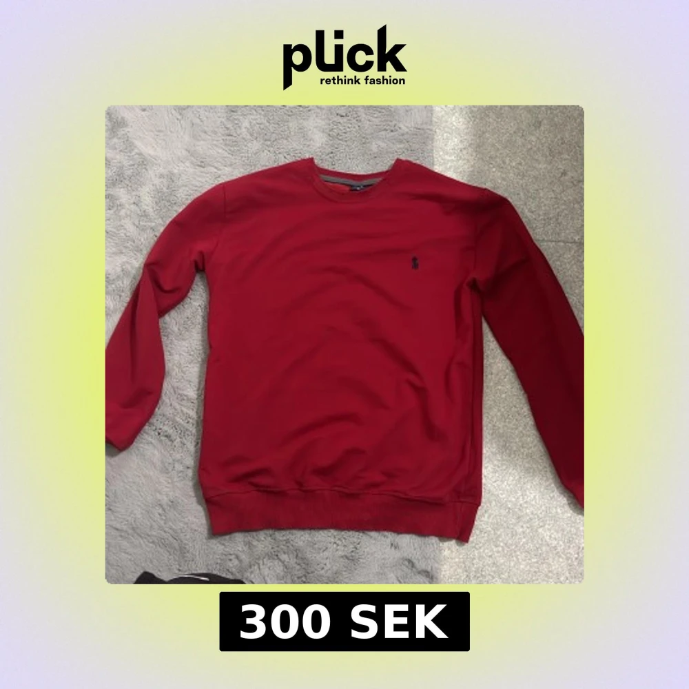 Röd långärmad tröja från Polo Ralph Lauren i storlek M. Klassisk rund halsringning och marinblå broderad logga på bröstet. Tröjan har ribbade muddar och är tillverkad i mjuk bomull, perfekt för en clean och stilren look.
