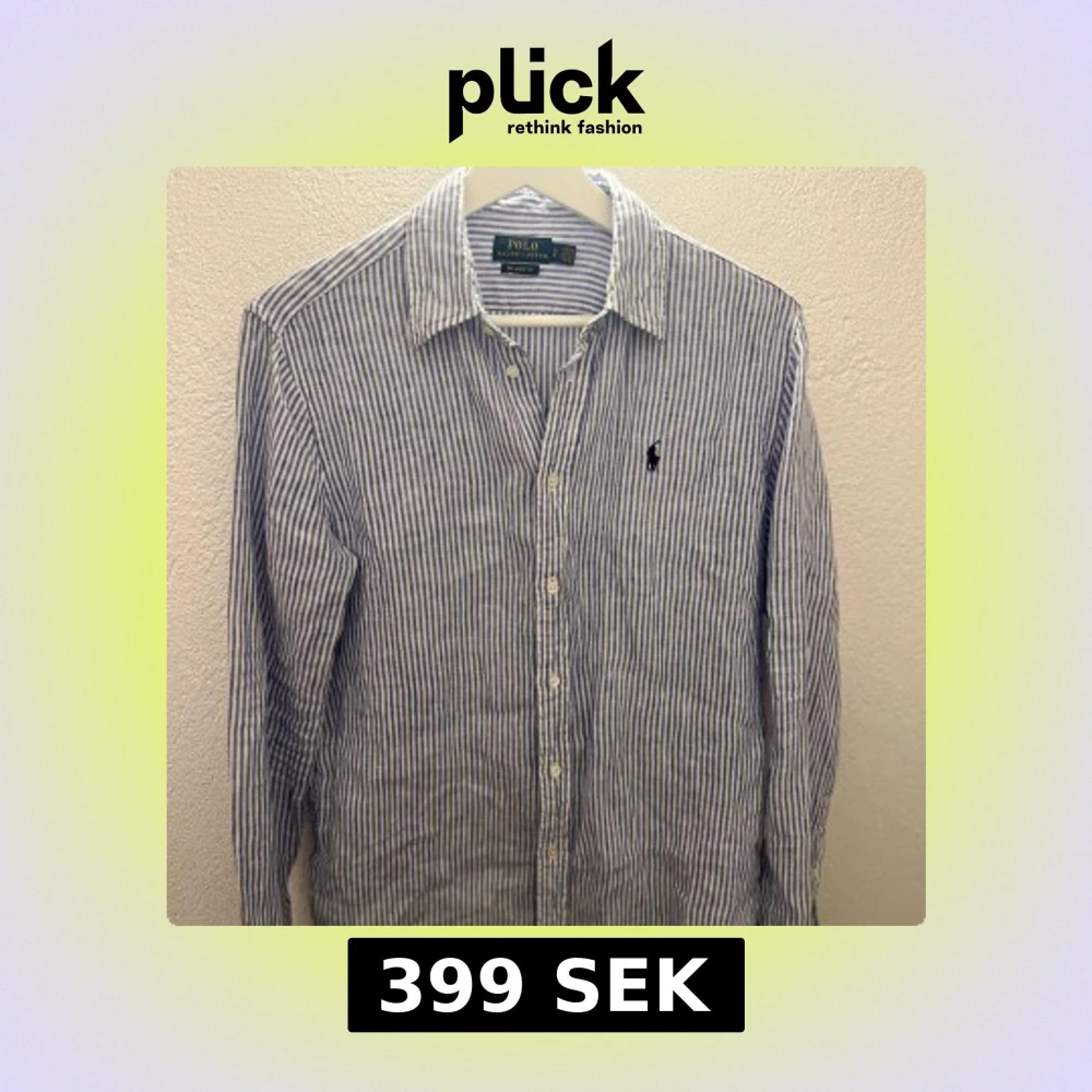 Snygg blå- och vitrandig linne skjorta från Ralph Lauren i relaxed fit. Storlek S. Tveka inte att skriva vid fler frågor!