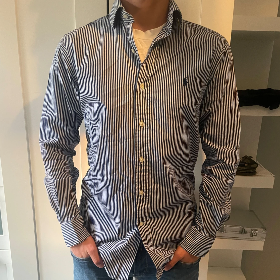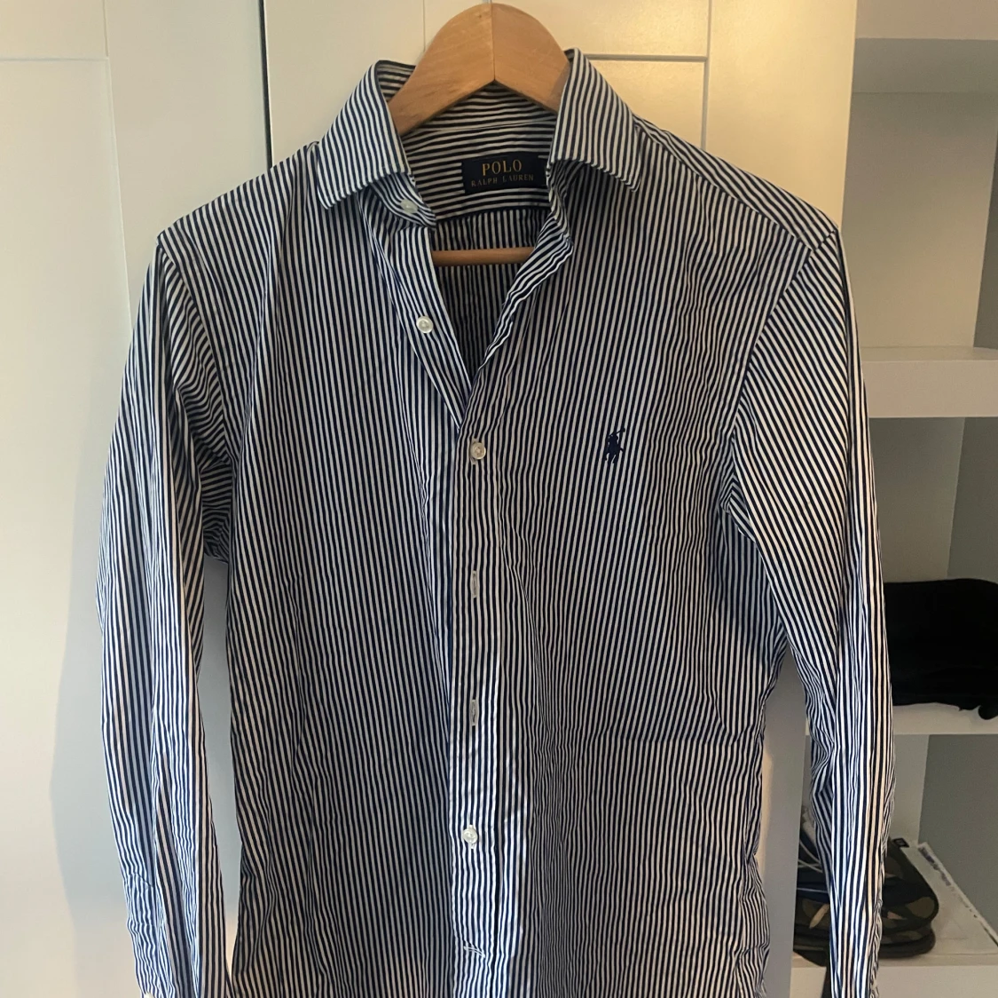 En jättefin Ralph lauren skjorta i vit och marinblå färg. Skjortan är nästan helt oanvänd och har inga defekter, skick 10/10. Tveka inte på att höra av er om frågor, pris kan diskuteras