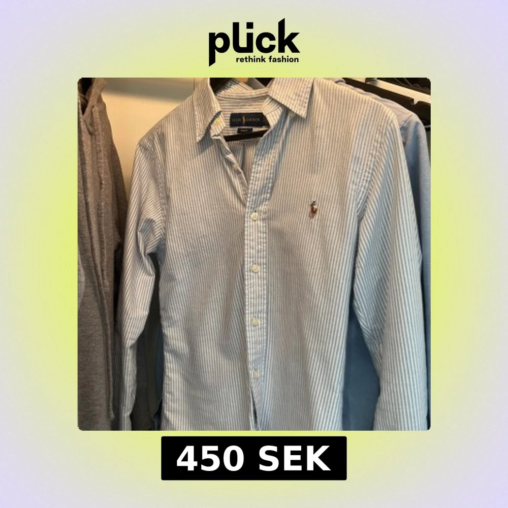 Säljer en klassisk blårandig skjorta från Ralph Lauren i slim fit-modell. Skjortan har långa ärmar, knappar framtill och den ikoniska broderade loggan på bröstet. Perfekt för en stilren och tidlös look. Storlek smal