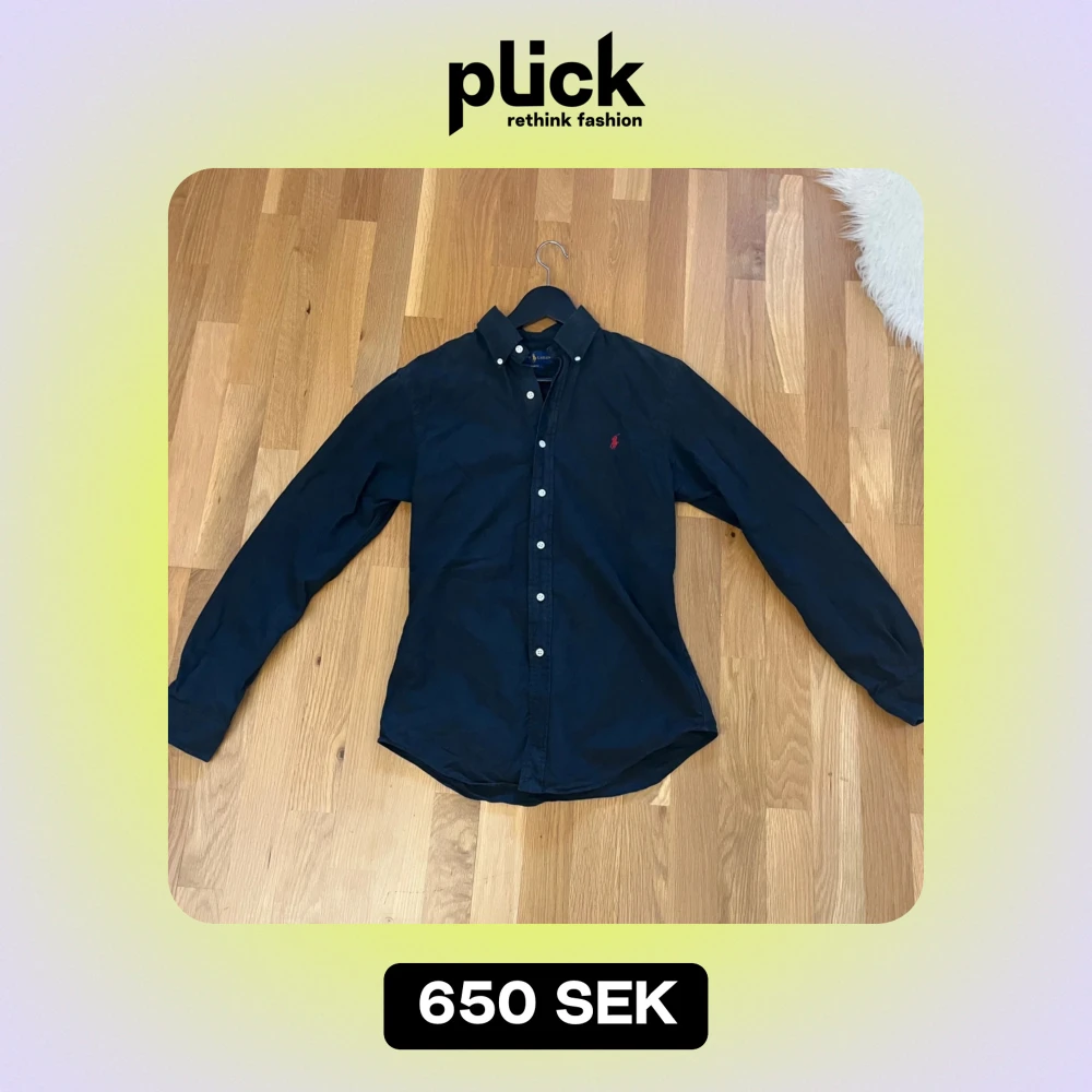 Säljer en stilren svart skjorta från Ralph Lauren i slim fit. Skjortan har långa ärmar och knappar fram. Den är i mycket bra skick och perfekt för både vardag och fest. Den klassiska designen gör den lätt att matcha med olika outfits. Passar perfekt för höst och vår!