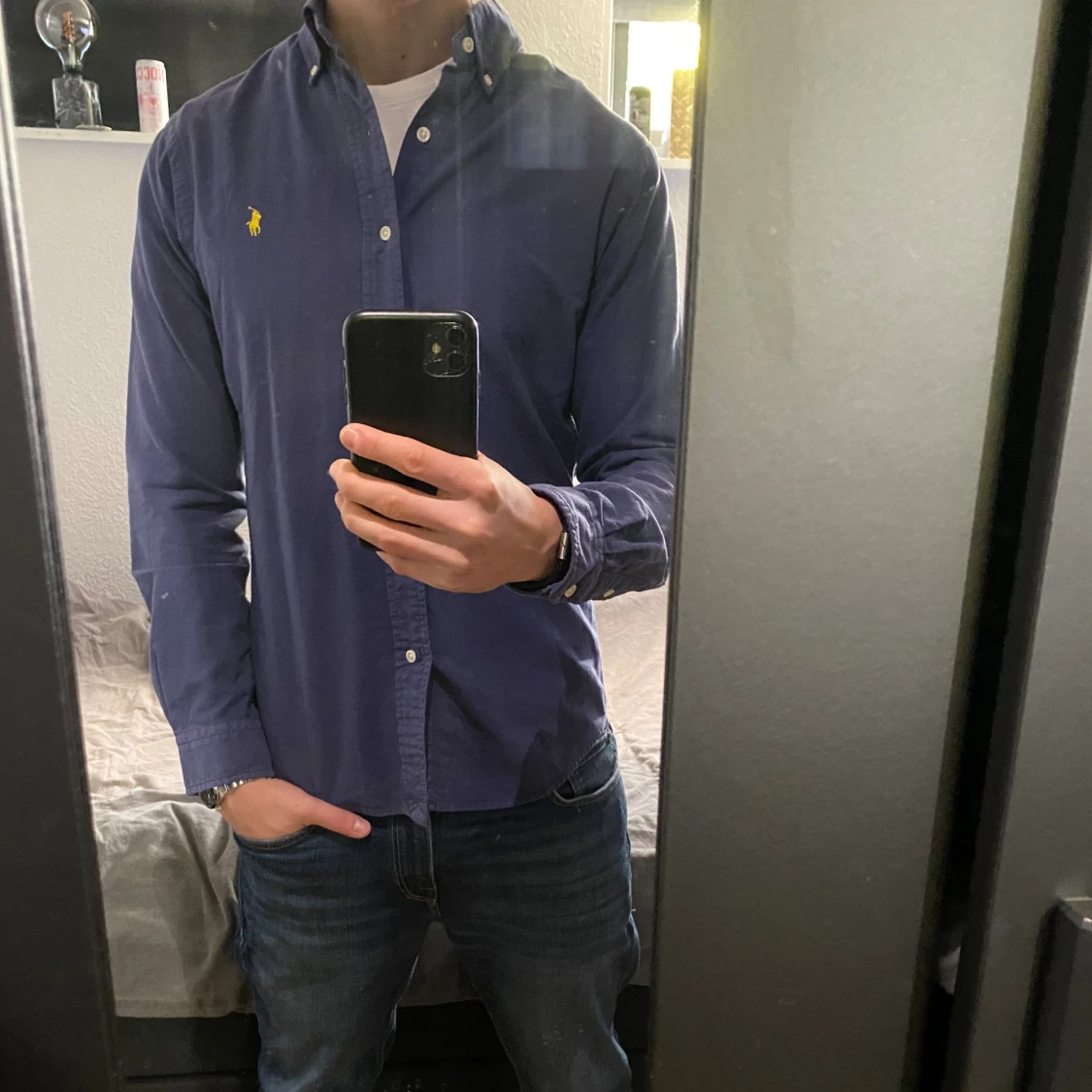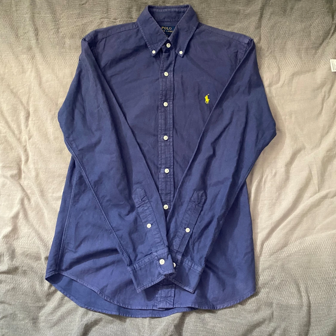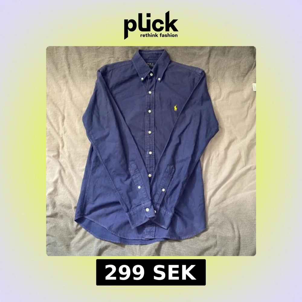 Marinblå skjorta från Ralph Lauren i storlek S. Fint skick till ett bra pris. Nypris: 1995kr. Mitt pris: 299kr Vid frågor eller funderingar, tveka inte att höra av dig.