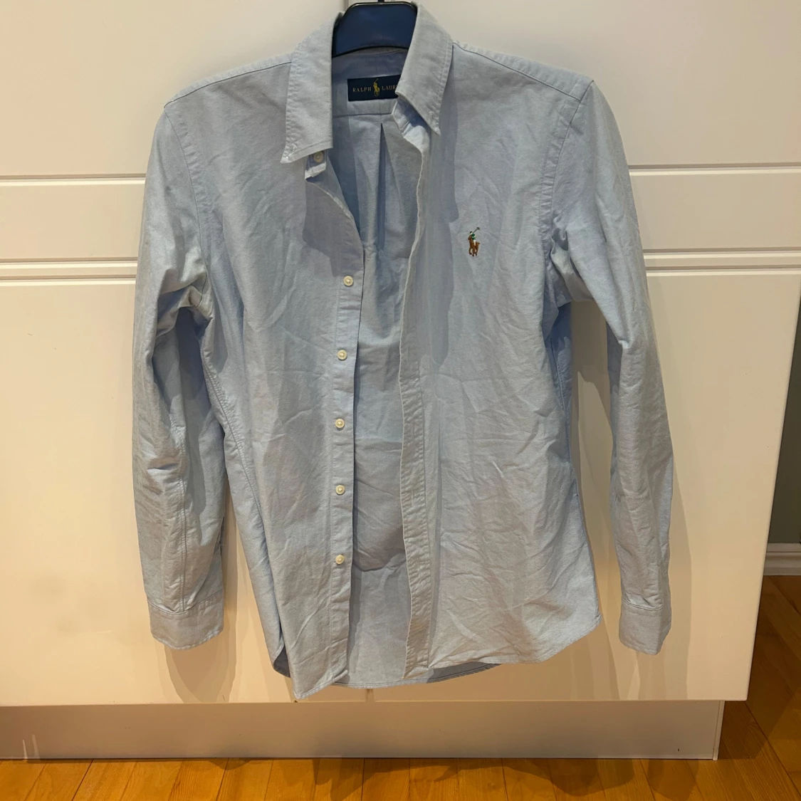 Snygg ljusblå skjorta från Ralph Lauren med klassisk krage och broderad logga på bröstet. Skjortan har långa ärmar och knappar framtill. Perfekt för en stilren look.