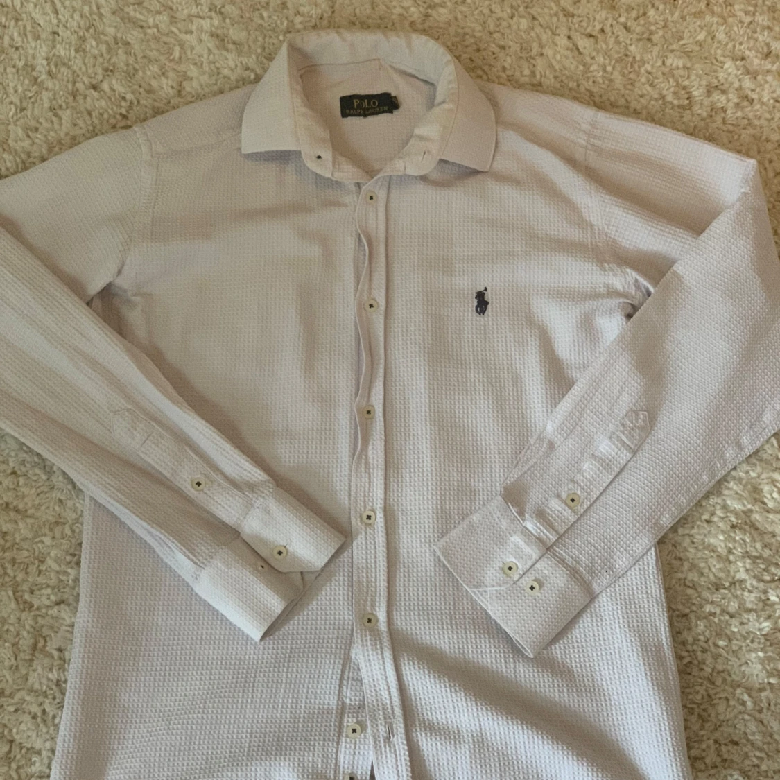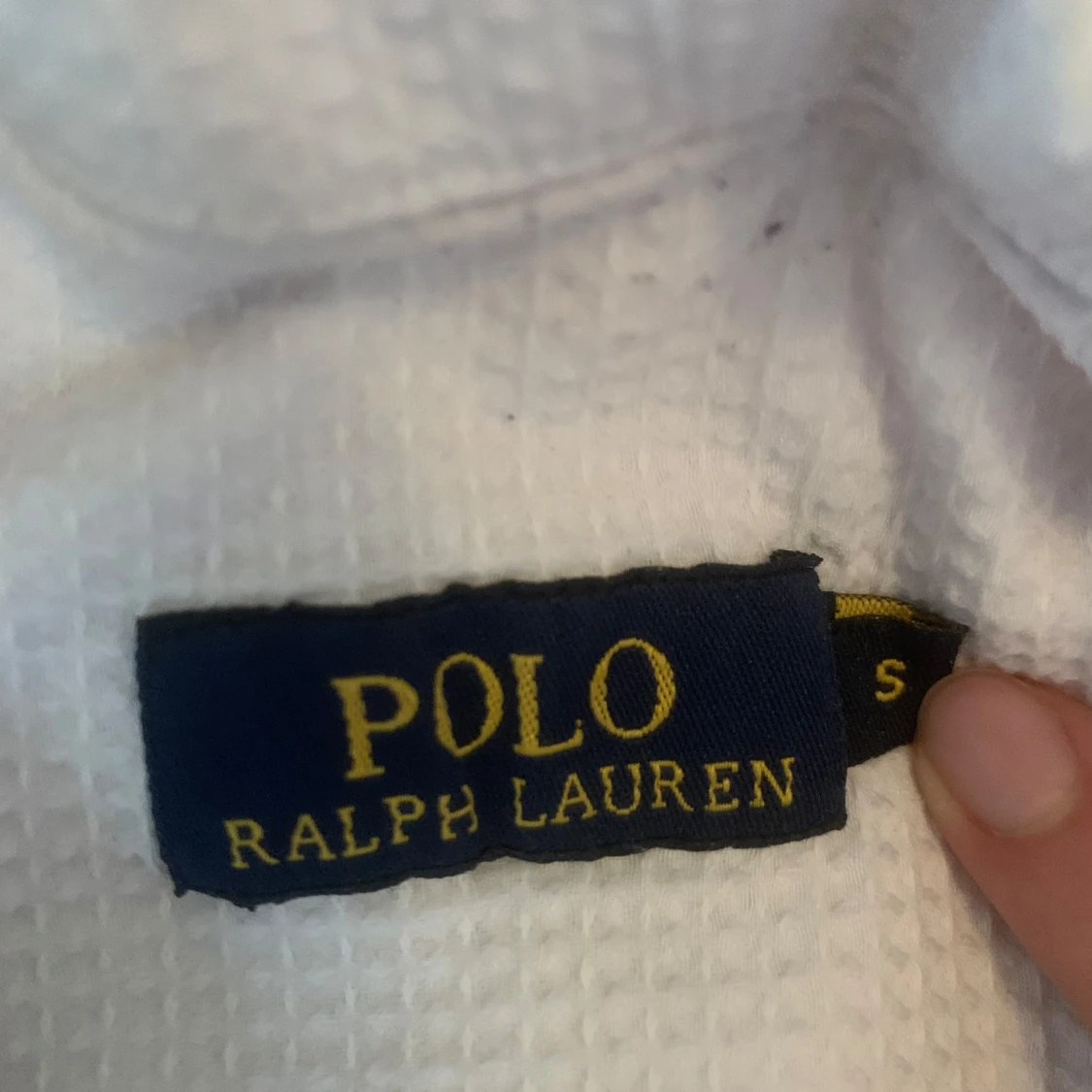 Klassisk vit skjorta från Polo Ralph Lauren i storlek S. Skjortan har lång ärm, knappar framtill och det ikoniska broderade logotypen på bröstet. Tillverkad i bomull med diskret struktur i tyget för en snygg touch.