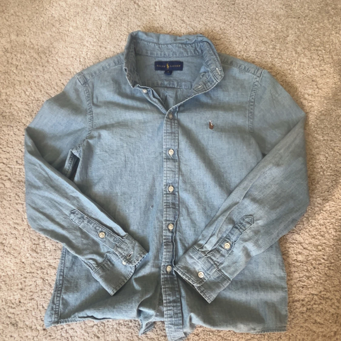 Snygg ljusblå skjorta från Ralph Lauren i bomull. Storlek 14 sitter som S. Klassisk modell med knappar hela vägen, lång ärm och broderad logga på bröstet. Perfekt för en clean och avslappnad look.