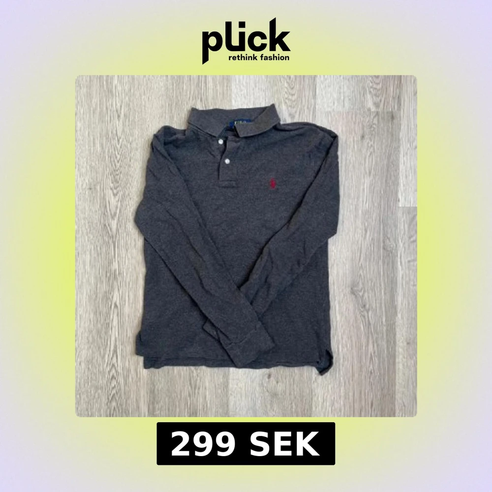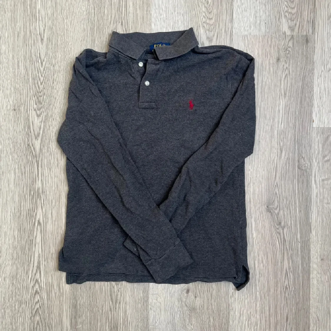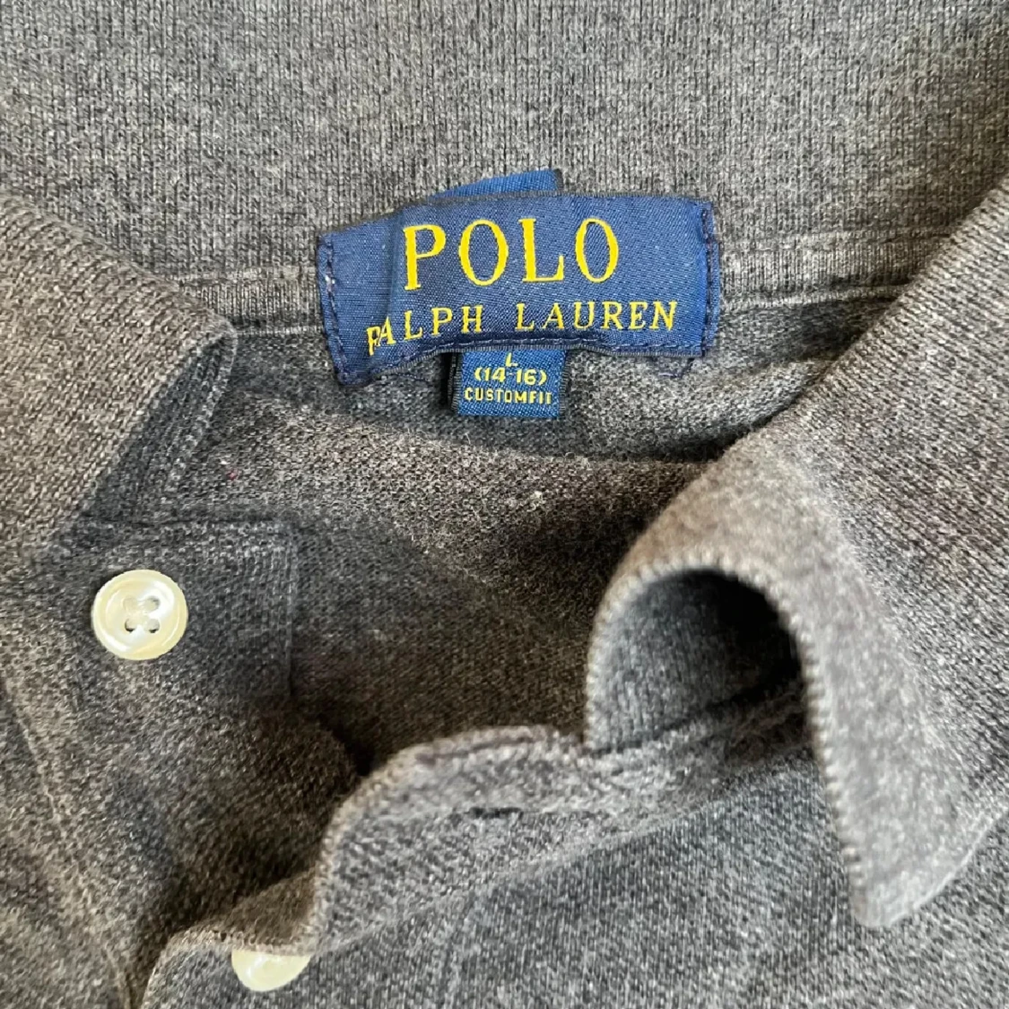 Snygg mörkgrå långärmad pikétröja från Polo Ralph Lauren. Är i storlek 14-16 i barn vilket motsvarar en Xs-S🤝🙌