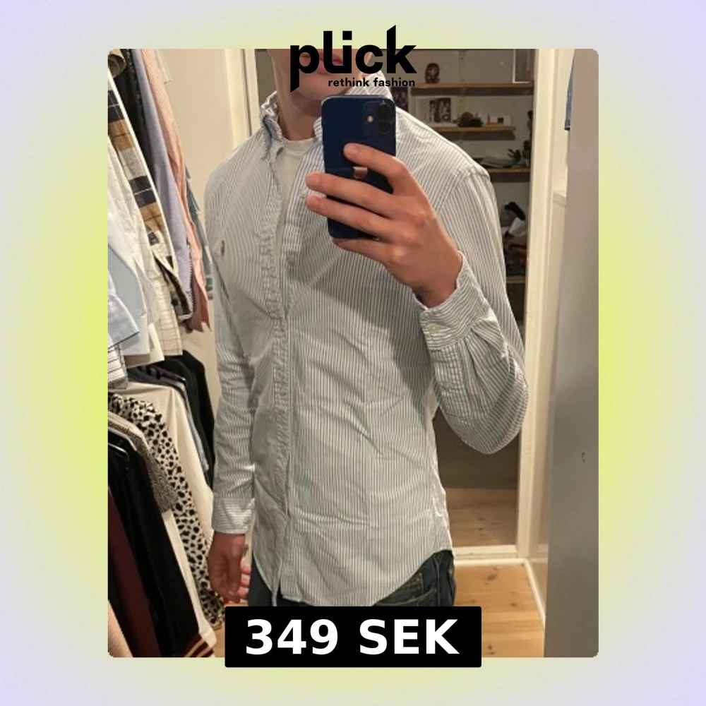 Snygg vit och ljusblå randig skjorta från Ralph Lauren. Perfekt för dig som gillar stilrena och tidlösa plagg.