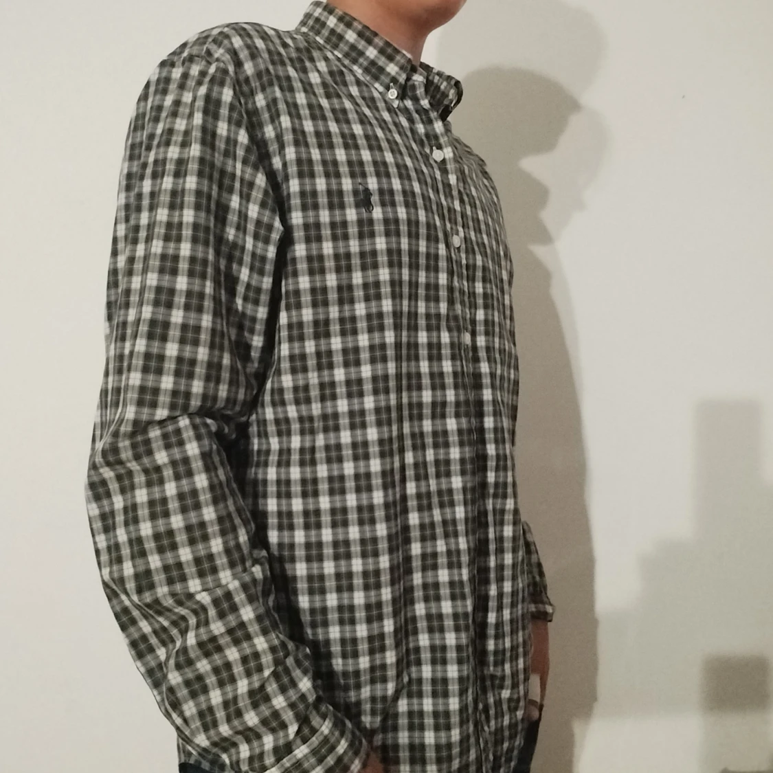 Rutig Ralph Lauren skjorta med märket i mörkblått. Väldigt bra skick storlek L. Kolla profilen för mer Ralph Lauren kläder!