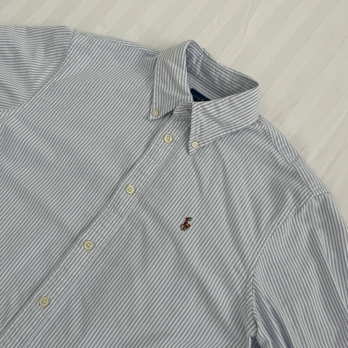 Sjukt fet Ralph Lauren skjorta med stiliga ränder✨Skick: Mycket bra✨Storlek: M men sitter som S✨Färg: Vit och ljusblå🤍🩵✨Tveka inte på att höra av dig vid frågor eller funderingar🙌🏼