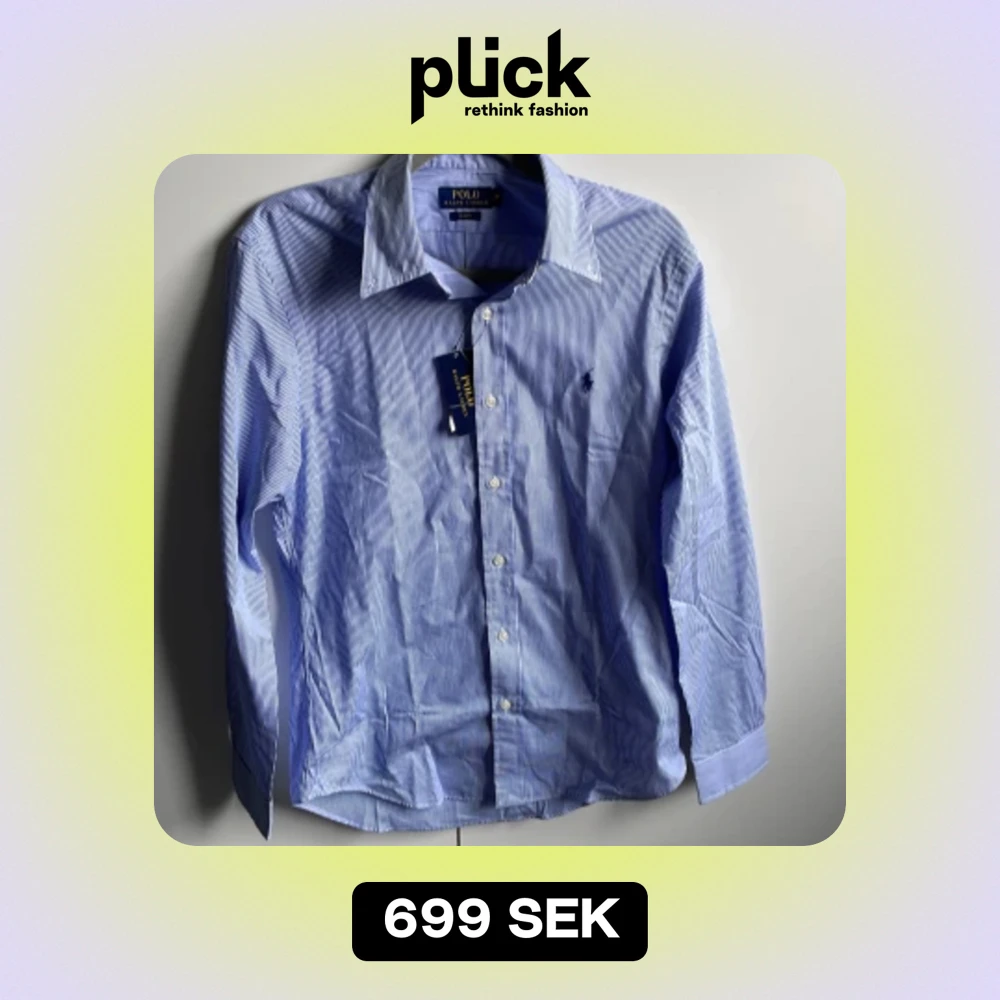 Randig Ralph Lauren skjorta i storlek medium. Den är oanvänd med prislappen kvar. Nypris: 1795 på Ralph Laurens hemsida.