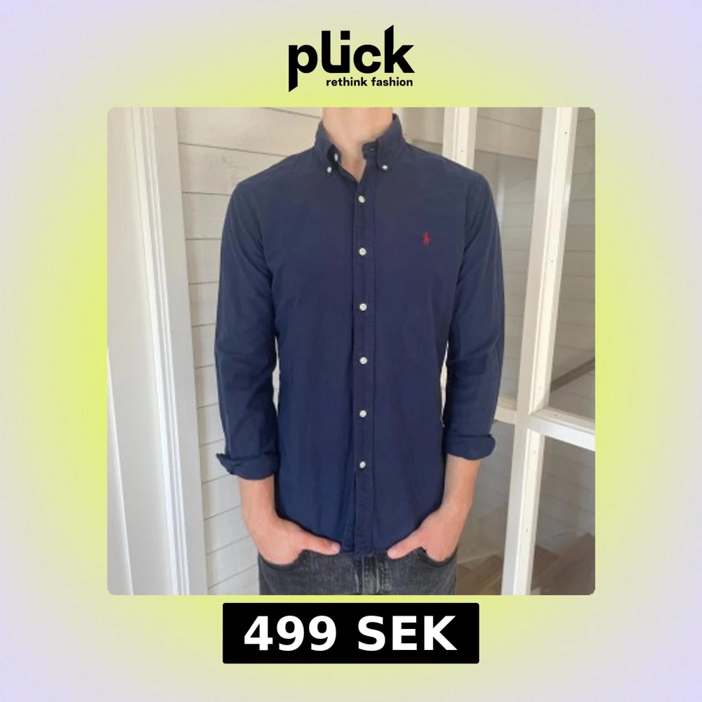 Säljer denna riktigt snygga mörkblåa Ralph lauren skjorta! Den är i mycket bra skick utan några defekter, storlek M modell slim fit, den är 77 cm lång och 50 cm bred under armhålorna, jag på bilderna är 184 cm och väger 80 kg, hör gärna av dig vid frågor!