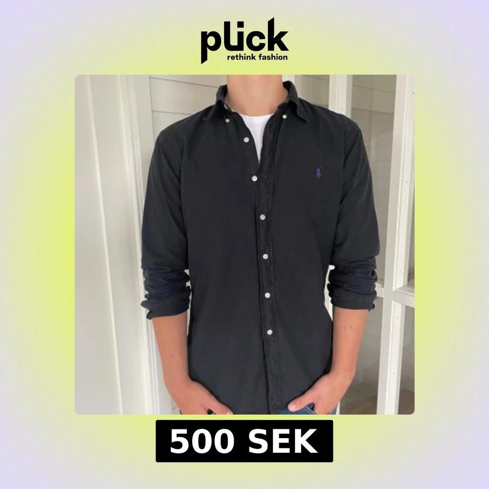 Säljer denna riktigt snygga svarta Ralph lauren skjorta med lila märke, den är i mycket bra skick utan några defekter, Storlek L modell slim fit den är 77 cm lång och 53 cm bred under armhålorna, hör gärna av dig vid frågor!