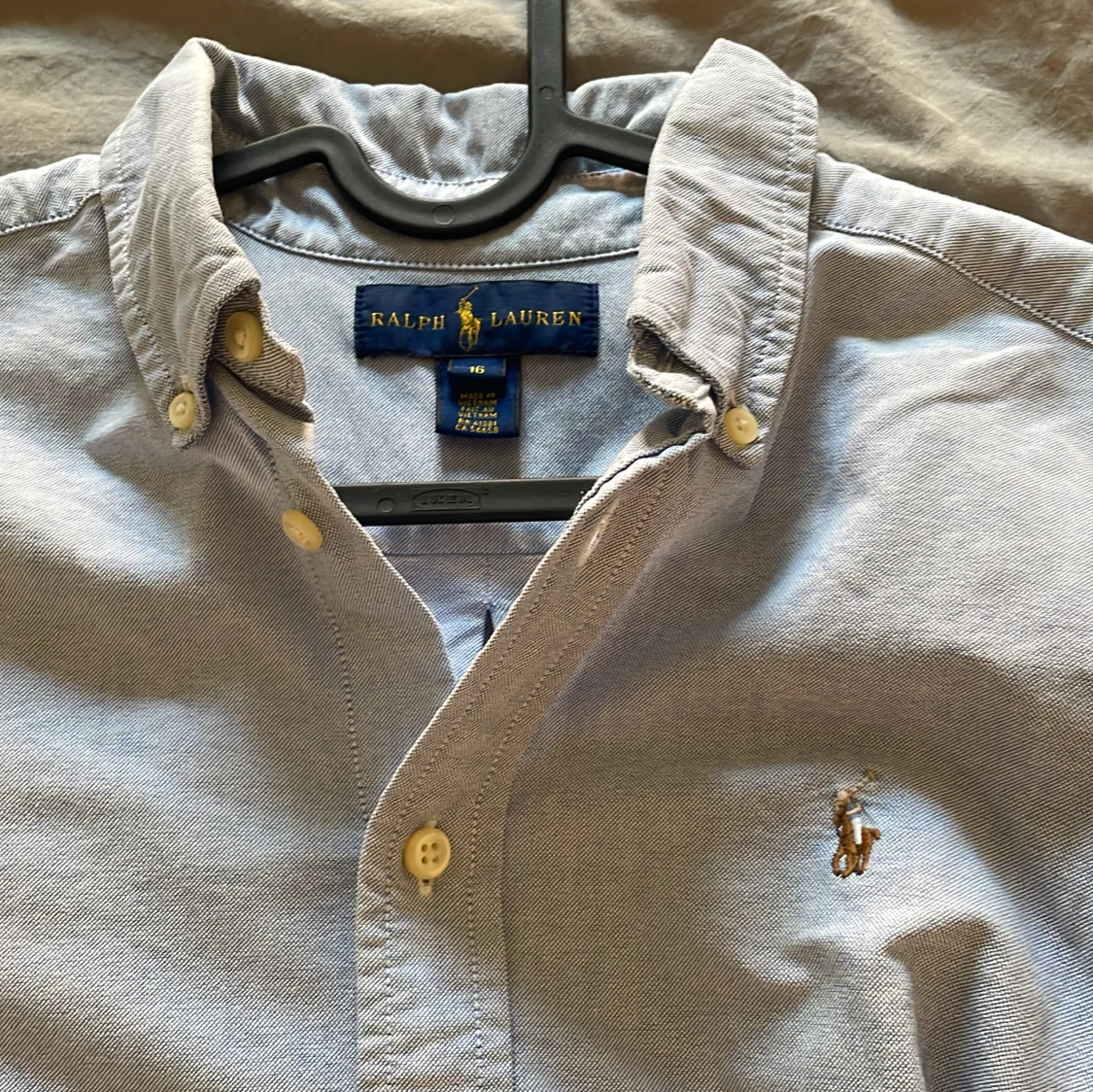 Ljusblå skjorta från Ralph Lauren i fint skick. Storleken är 16 år men sitter som en S, på bilden är jag 183cm och väger 74kg.