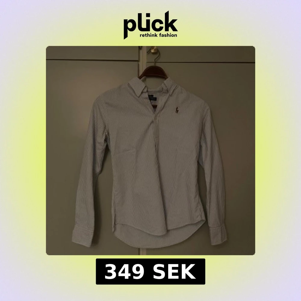 Vit och ljusblå randig skjorta från Ralph Lauren med klassisk krage och knappar framtill. Långärmad modell med broderad logga på bröstet. Jag är 170 lång och väger 57 kg, den passar perfekt på mig! Skjortan är i bomull och har en normal passform, perfekt för en clean och stilren look.