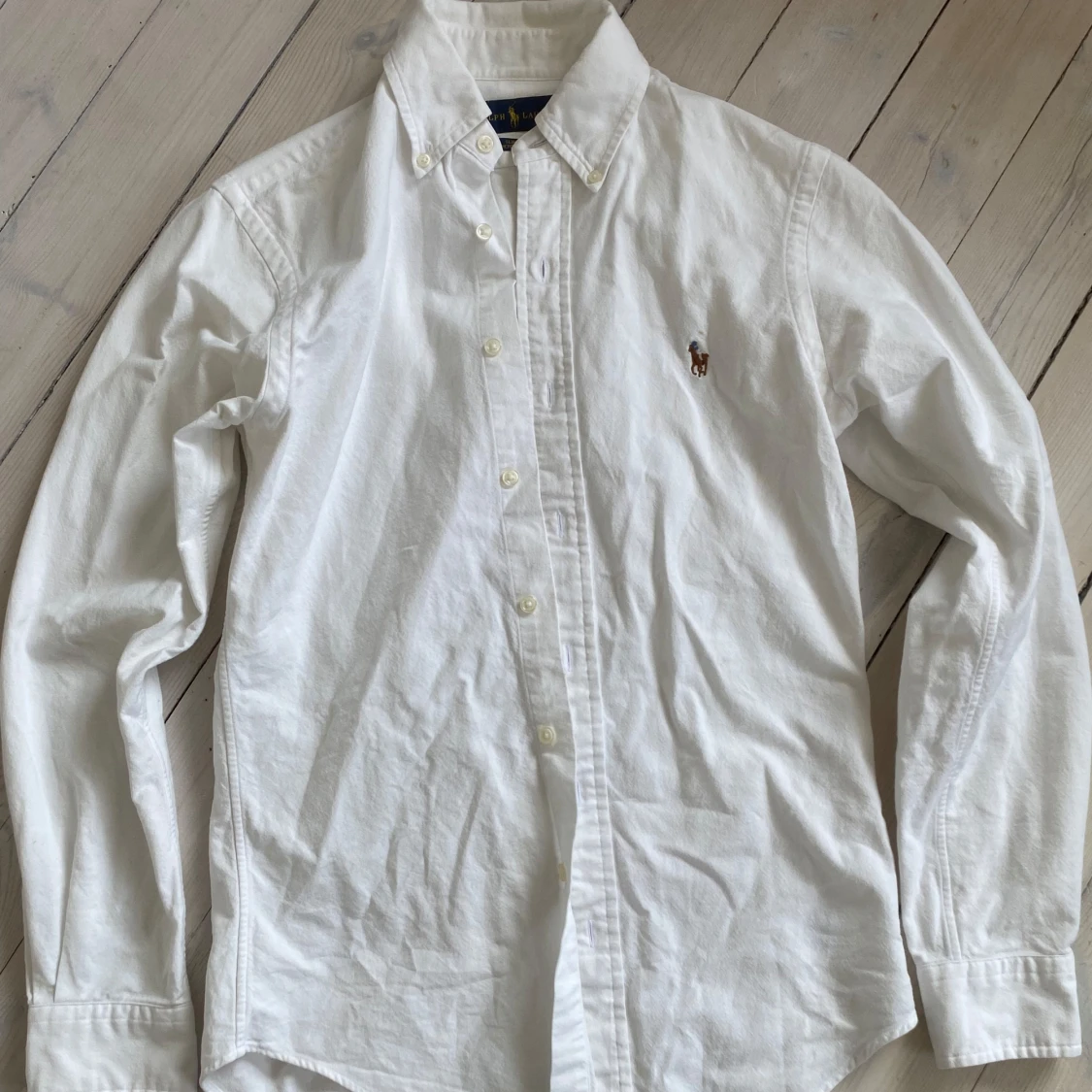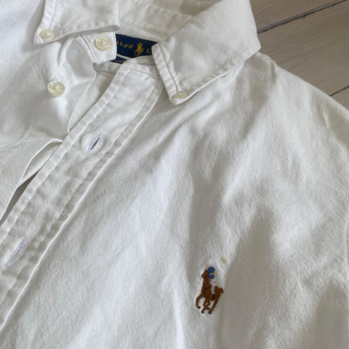 Vit skjorta från Ralph Lauren i slim fit-modell med klassisk button down-krage och broderad logga på bröstet. Tillverkad i bomull. Långärmad och med knappar framtill. Perfekt för en clean och stilren look.