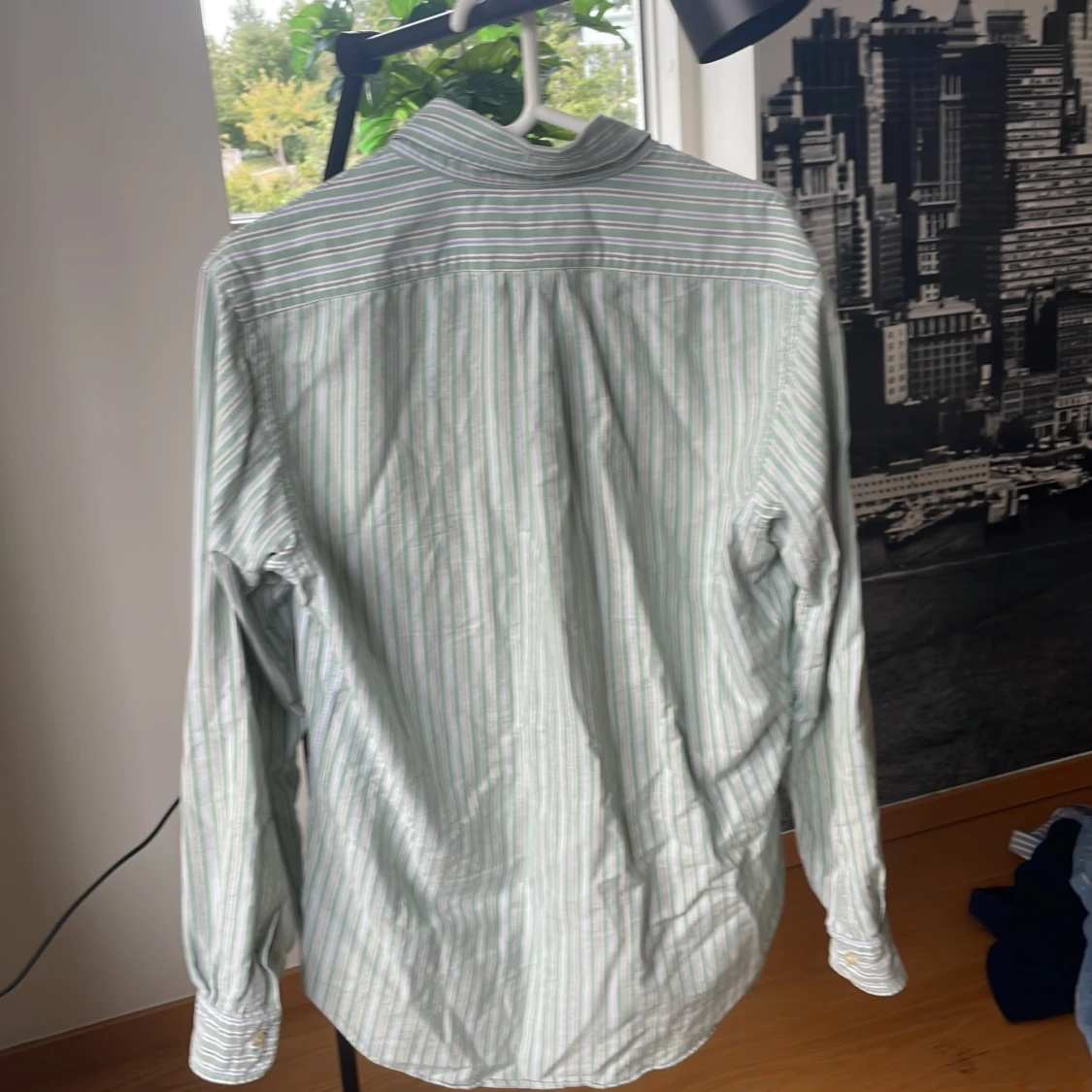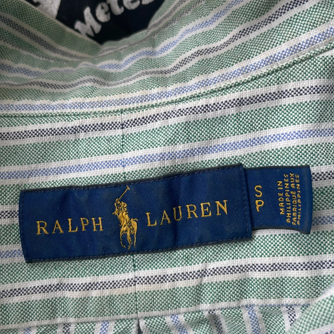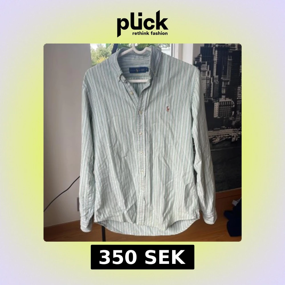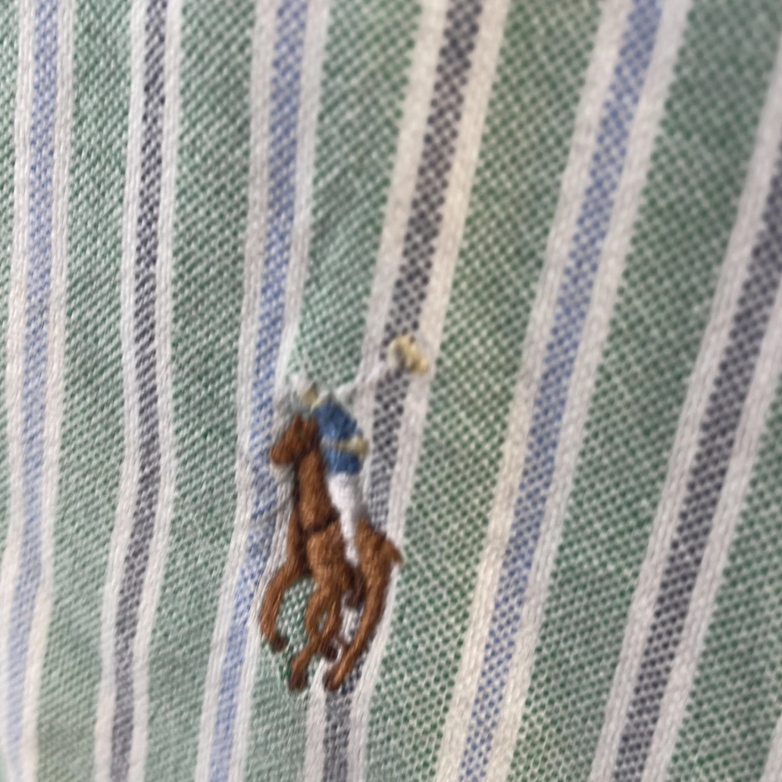 Snygg grön- och vitrandig skjorta från Ralph Lauren med klassisk krage och broderad logga på bröstet. Skjortan har lång ärm, knäppning framtill och är tillverkad i luftig bomull. Perfekt för en clean och stilren look.