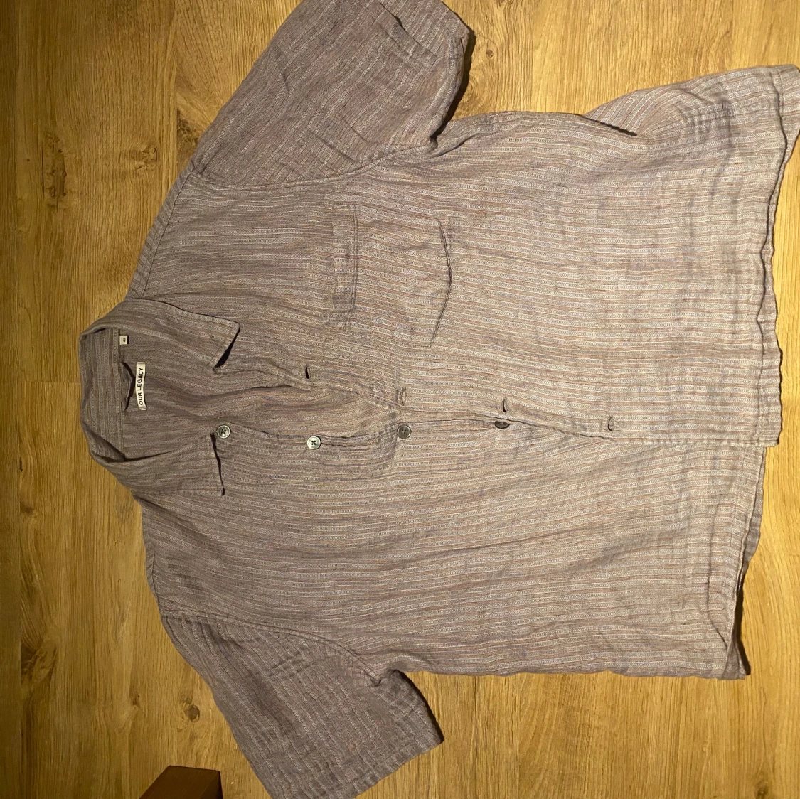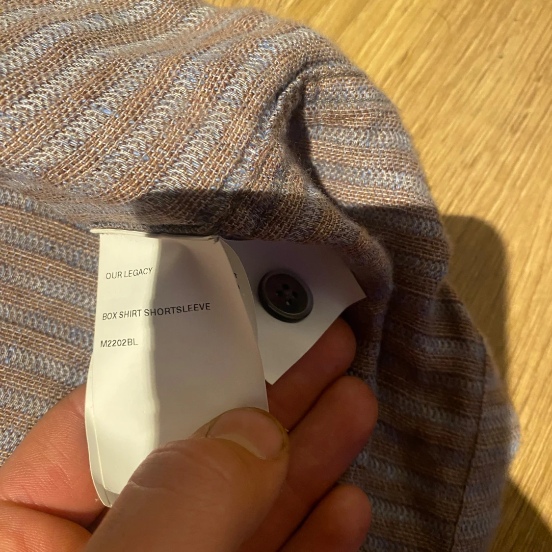 Säljer en snygg och stilren randig skjorta från Our Legacy i storlek 48. Skjortan är kortärmad och har en avslappnad passform med knappar framtill. Perfekt för sommardagar eller en avslappnad kväll ute. Materialet känns lätt och luftigt, vilket gör den idealisk för varmare väder.