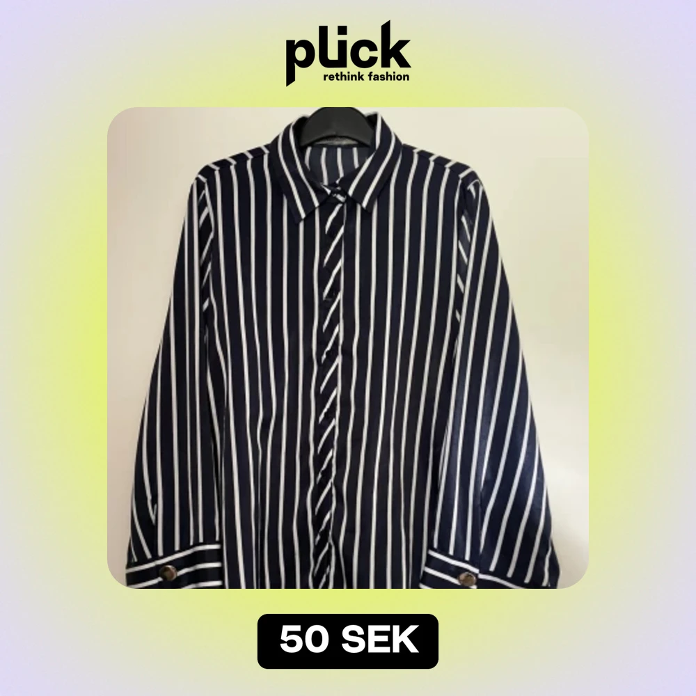 En marinblå skjorta med vita ränder och vida armar från Zara storlek S
