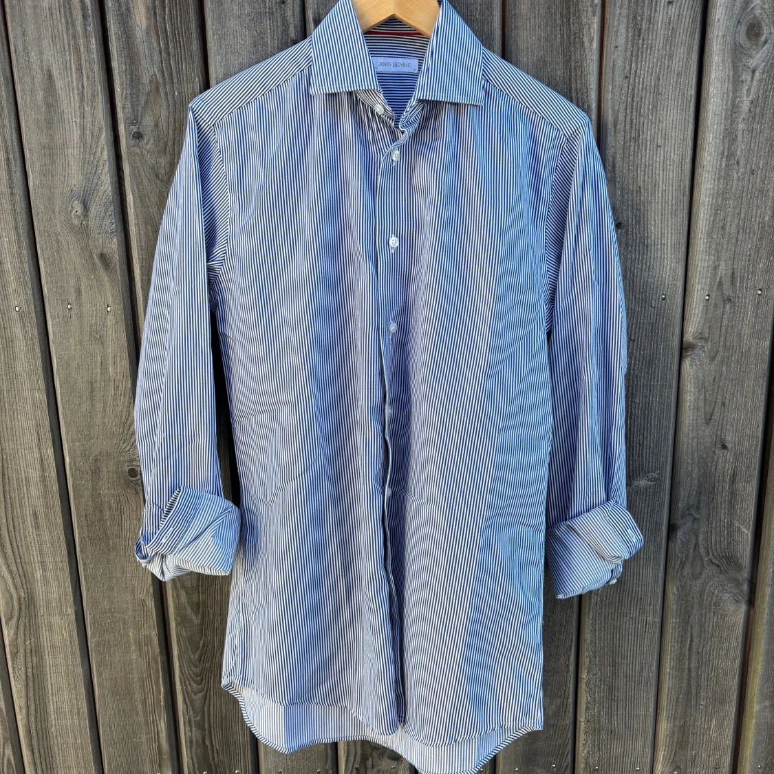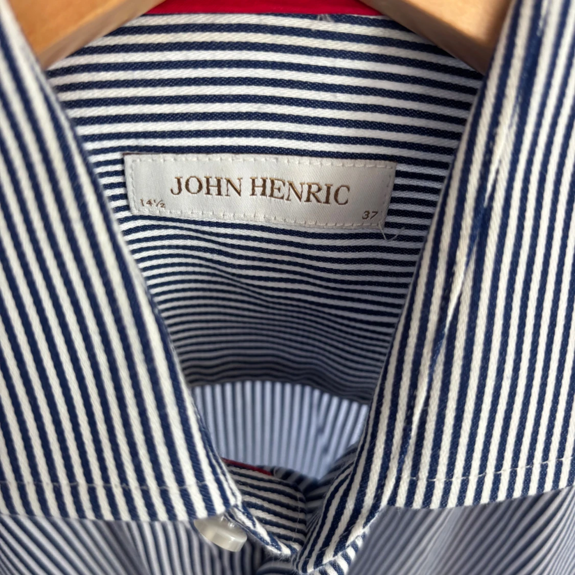 Snygg blå- och vitrandig skjorta från John Henric med klassisk krage och knäppning framtill. Skjortan har långa ärmar och är tillverkad i mjuk bomull, perfekt för en stilren look. Passar dig som gillar tidlös och fräsch stil.