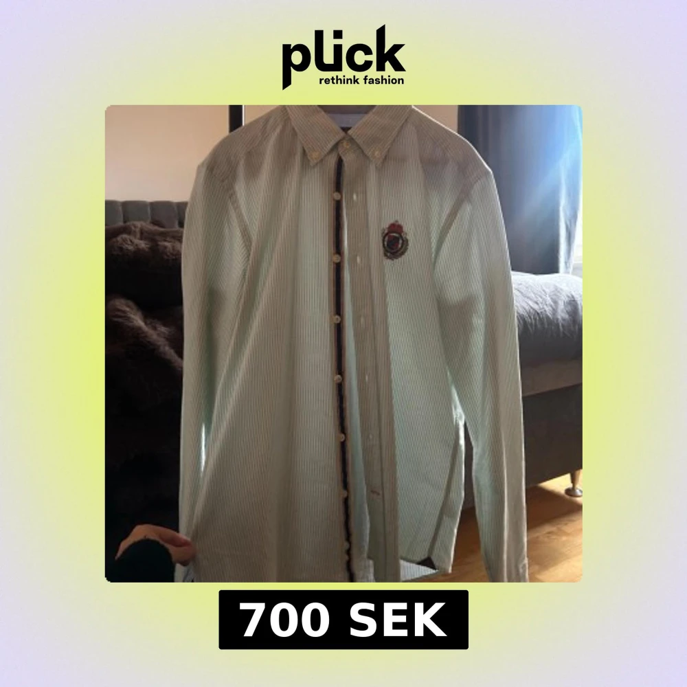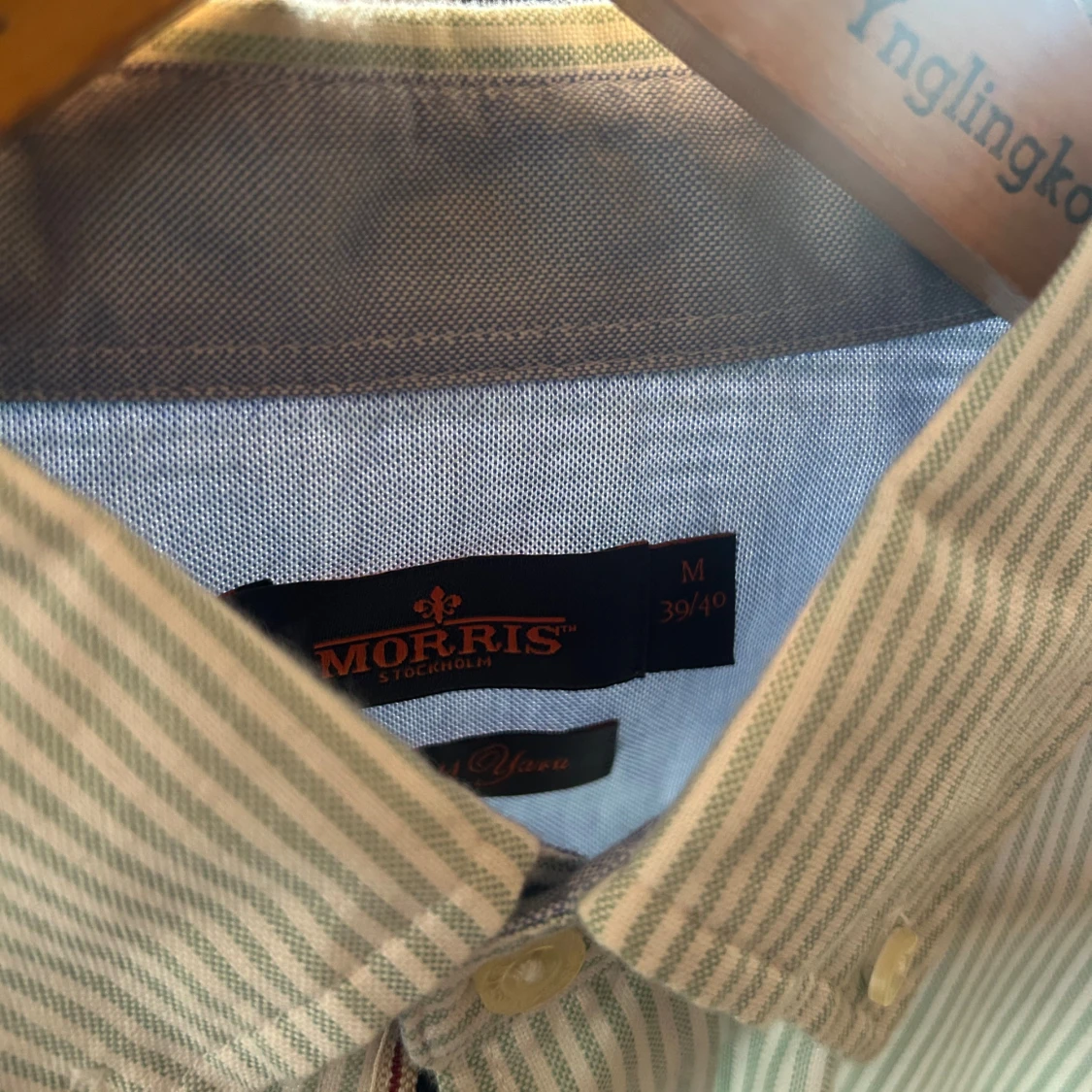 Snygg randig skjorta från Morris i ljusgrönt och vitt. Klassisk krage, broderad logga på bröstet och knappar framtill. Skjortan är långärmad och tillverkad i mjuk bomull, perfekt för en stilren look.