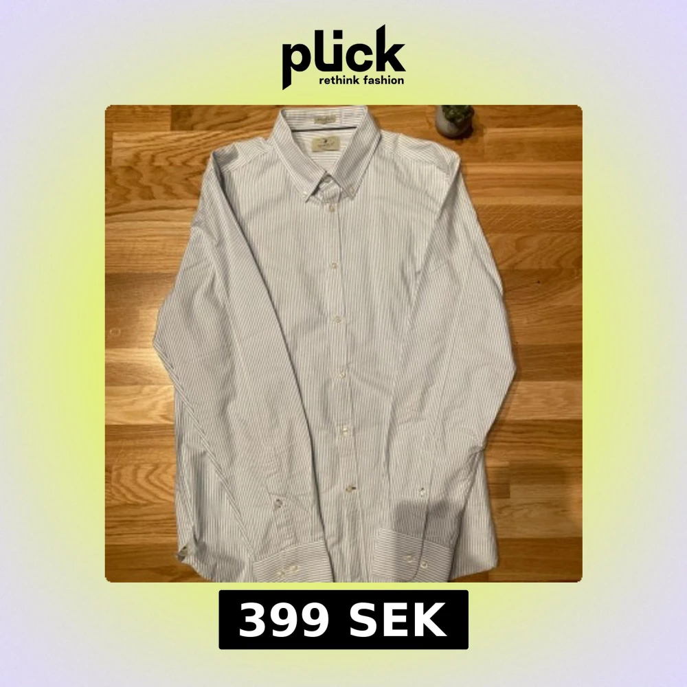 Säljer en stilren randig skjorta från Nimbus i blått och vitt. Skjortan är långärmad och har en klassisk krage med knappar framtill. Tillverkad i 100% kammad bomull för en bekväm känsla. Perfekt för en avslappnad men ändå uppklädd look.