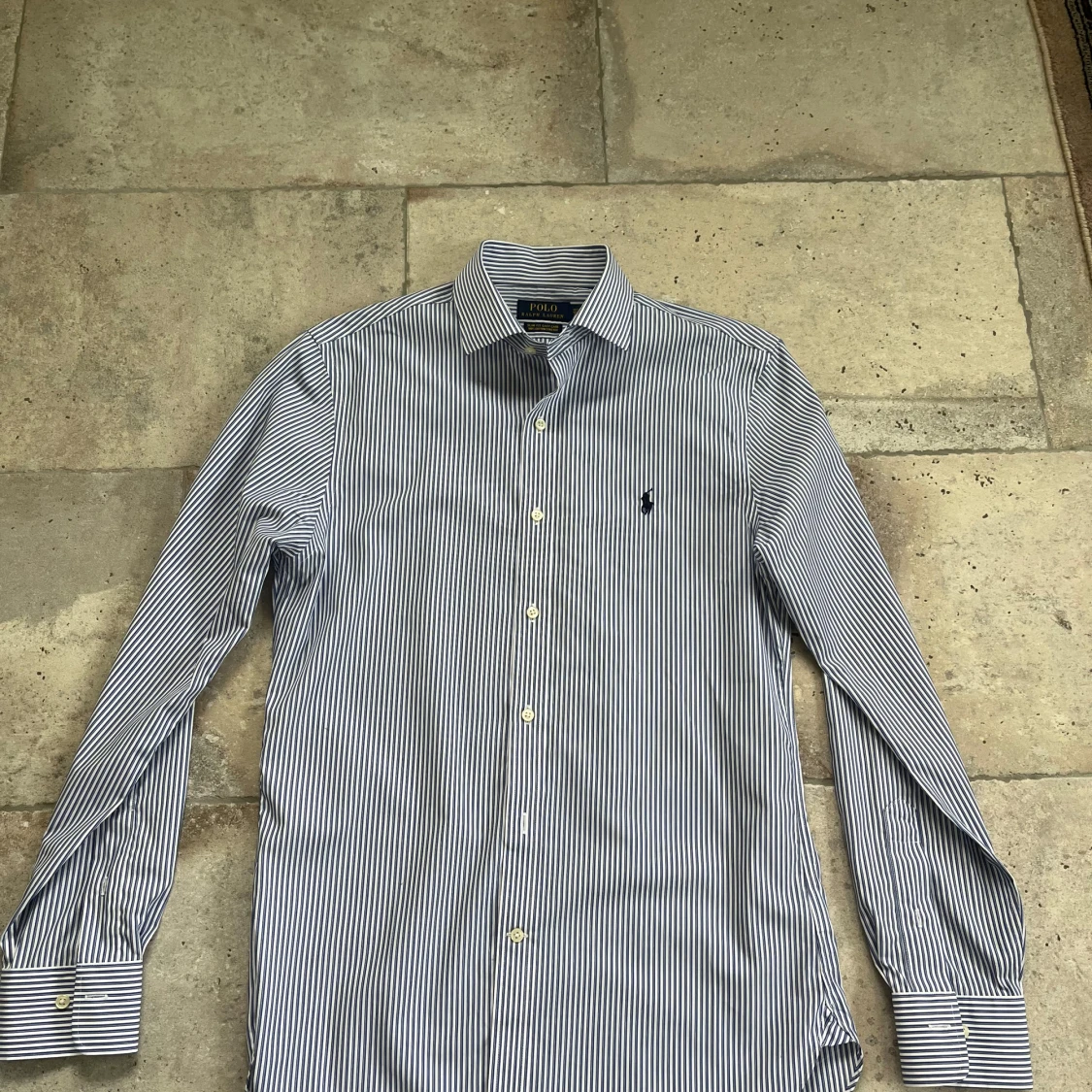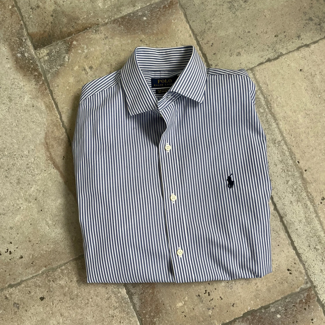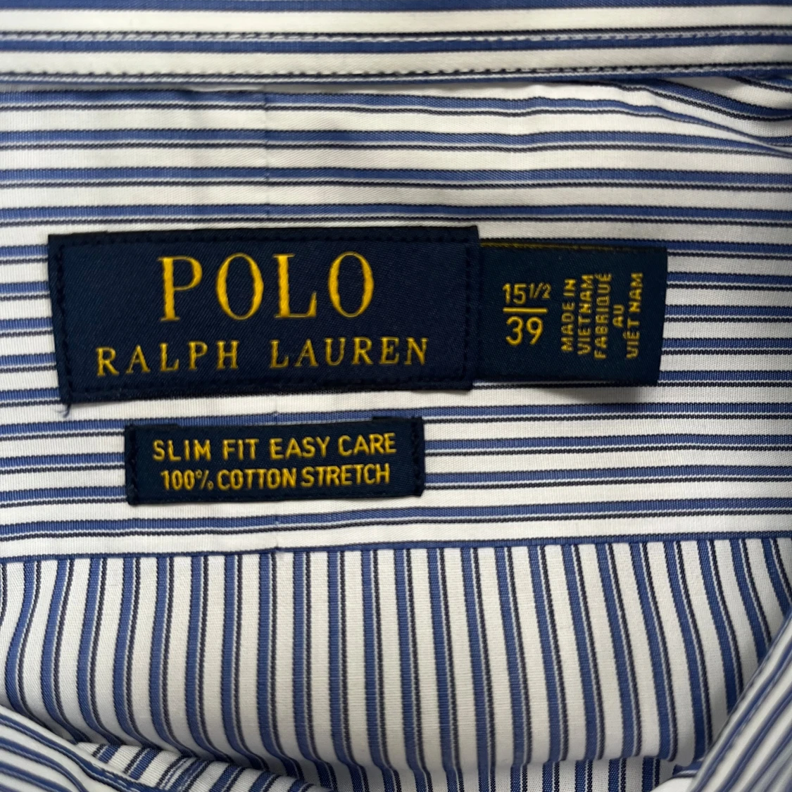 Snygg slim fit skjorta från Polo Ralph Lauren i vitt och blått med tunna fina ränder.