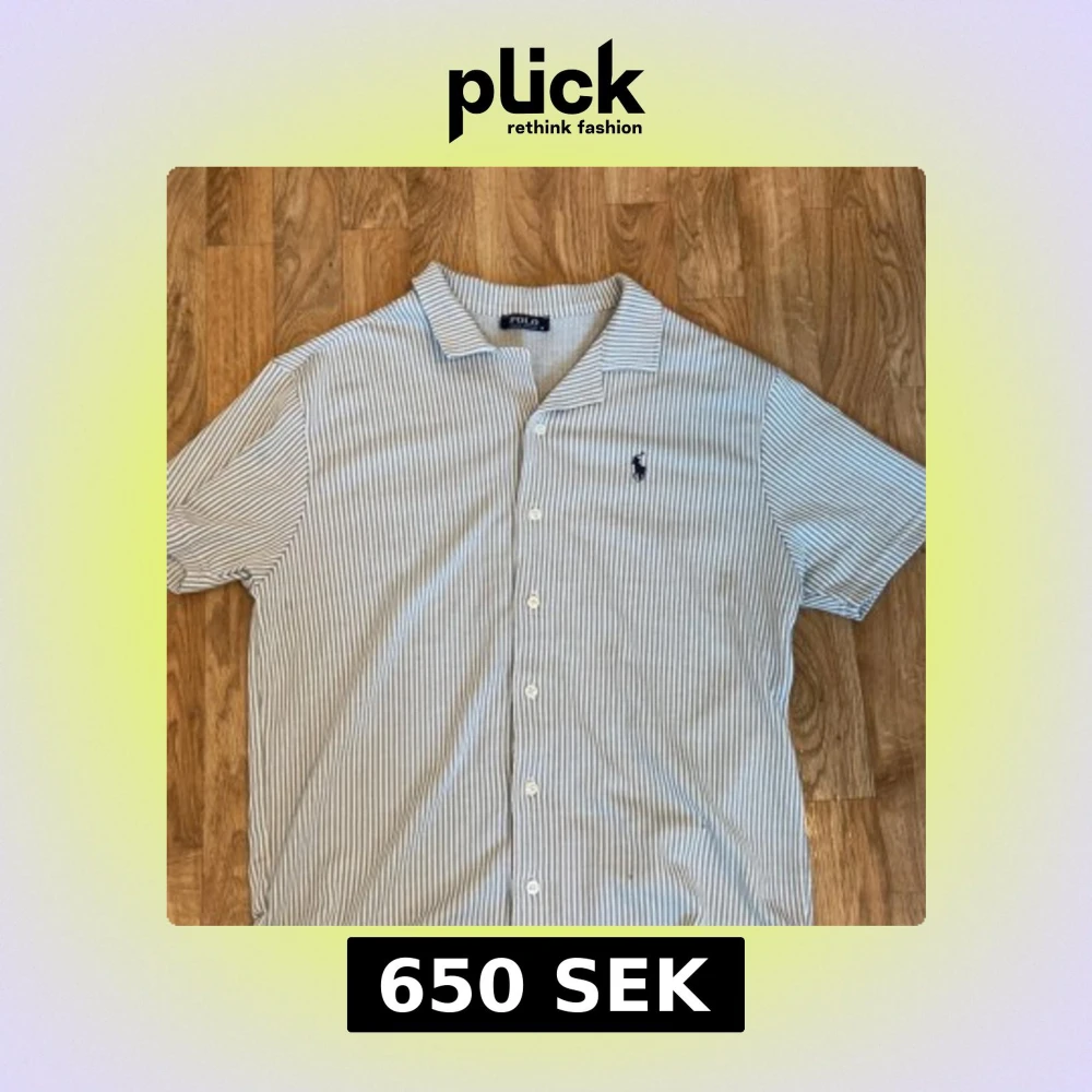 Snygg kortärmad skjorta från Polo Ralph Lauren i vitt och grått med tunna vertikala ränder. Klassisk krage, knäppning framtill och broderad logga på bröstet. Perfekt för en clean och stilren look. Endast använd ett par gånger.