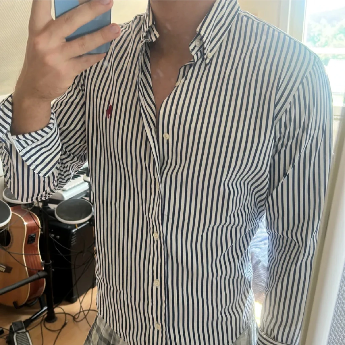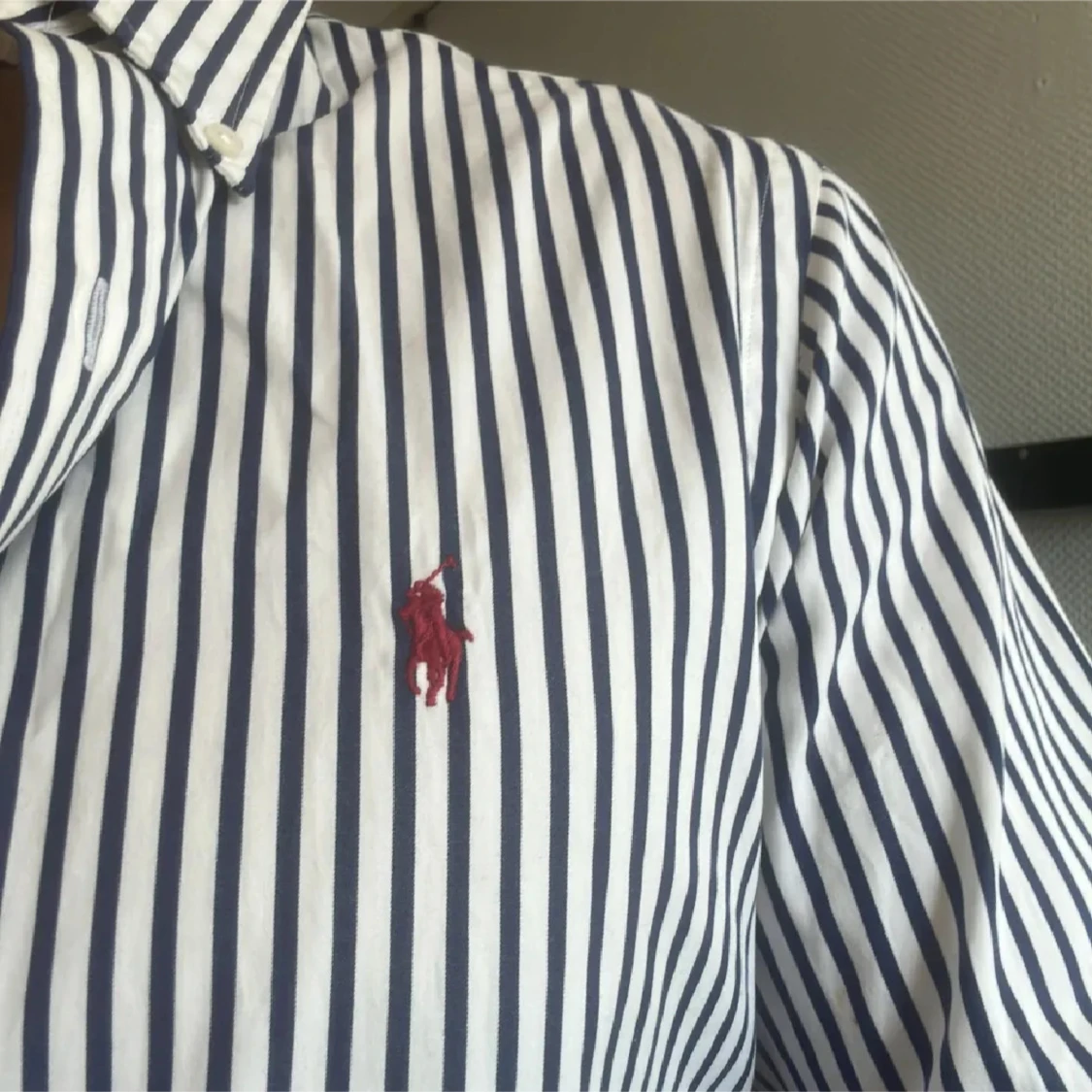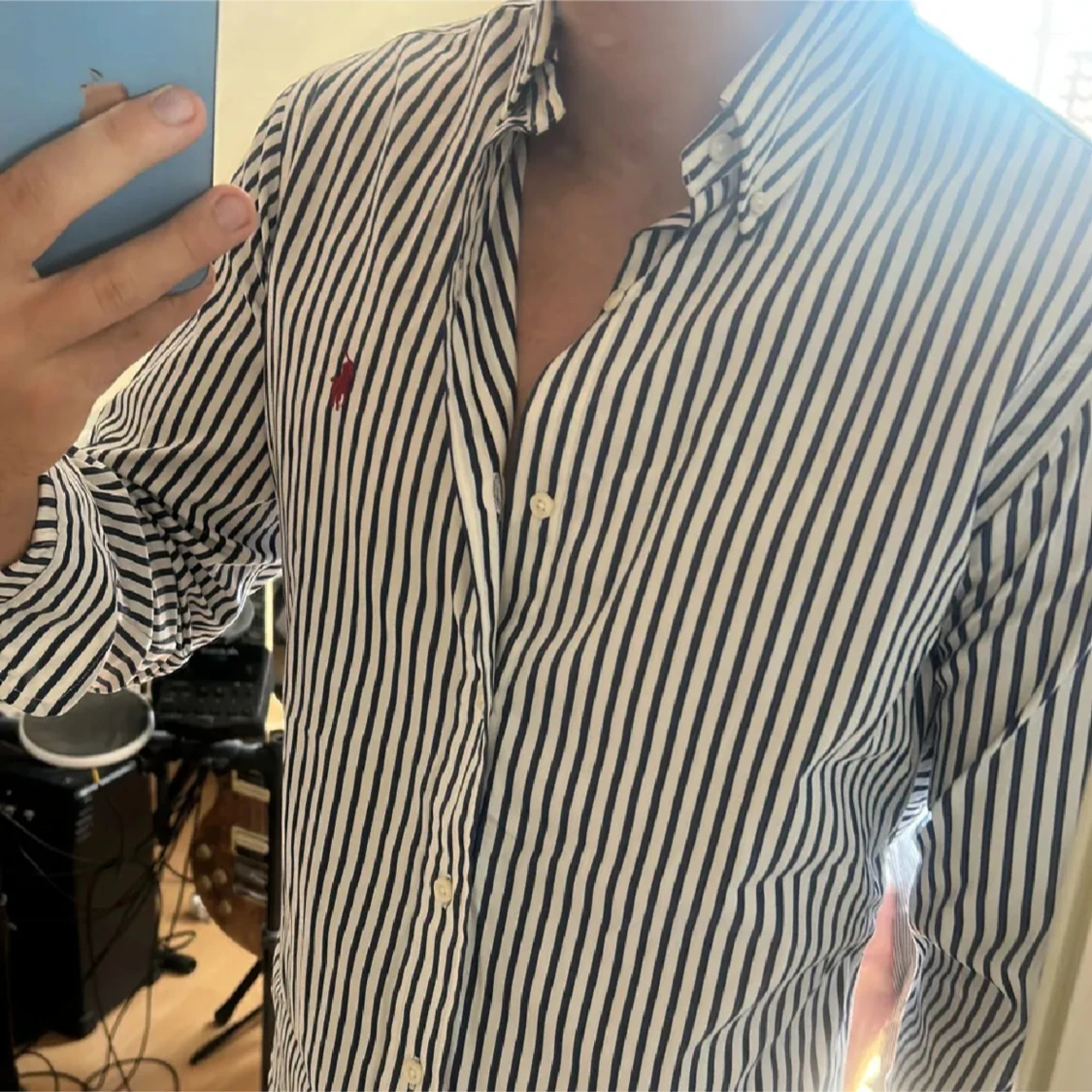 Snygg och stilren blårandig skjorta från Ralph Lauren som är perfekt för tillexempel fester🍾Men även som en casual skjorta. Den sitter mycket bra och är storlek s, fast kan kännas lite mindre. Mycket skönt material och i fantastiskt skick, priset är självklart förhandlingsbart, fråga på!👔💰💸