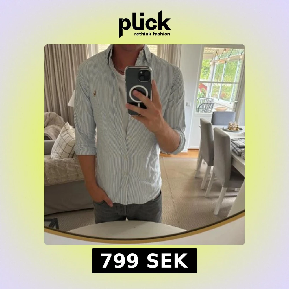 Snygg slim fit skjorta från Ralph Lauren. Köpte i butik förra sommaren, väldigt sparsamt använd, inga defekter förutom lite annan färg inuti kragen(bild 4) men syns ABSOLUT INTE utifrån😊😊
