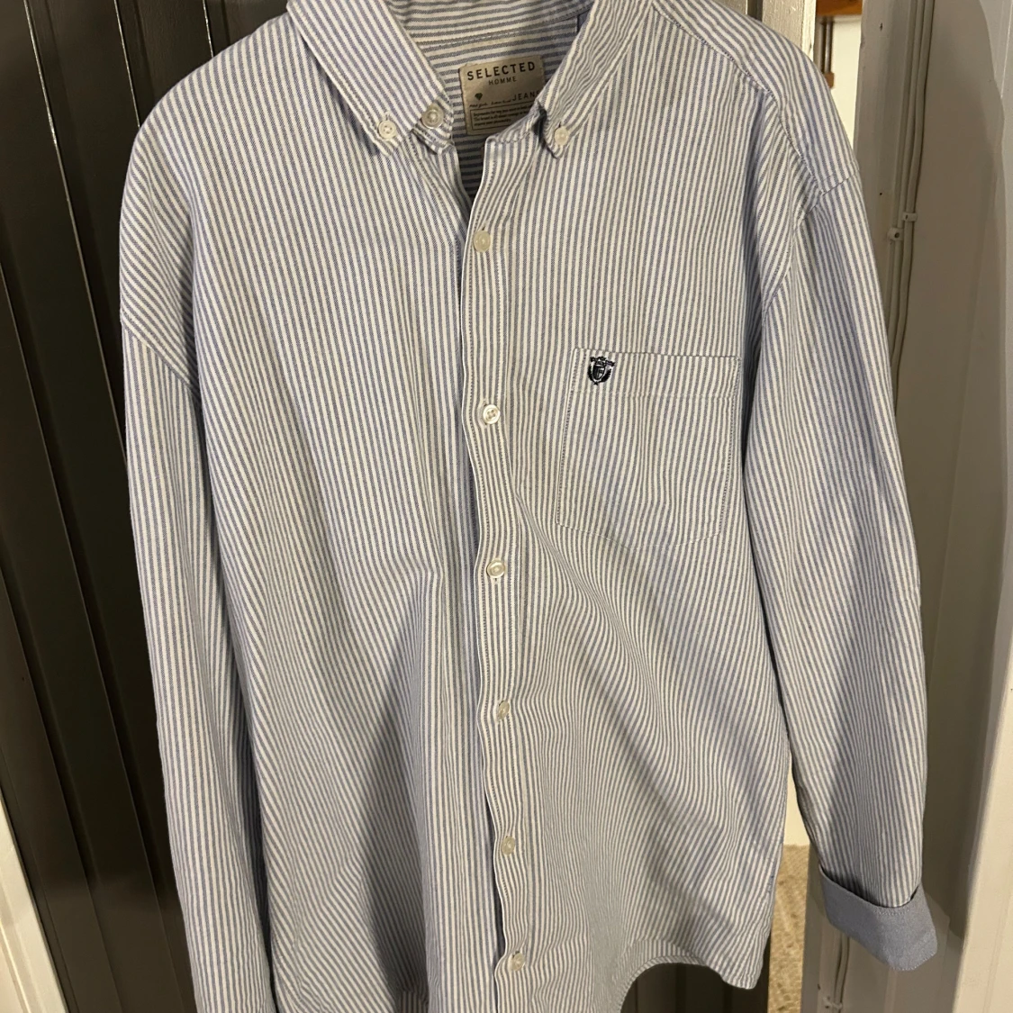 Snygg blå- och vitrandig skjorta från Selected Homme. Skjortan har långa ärmar och en klassisk krage.