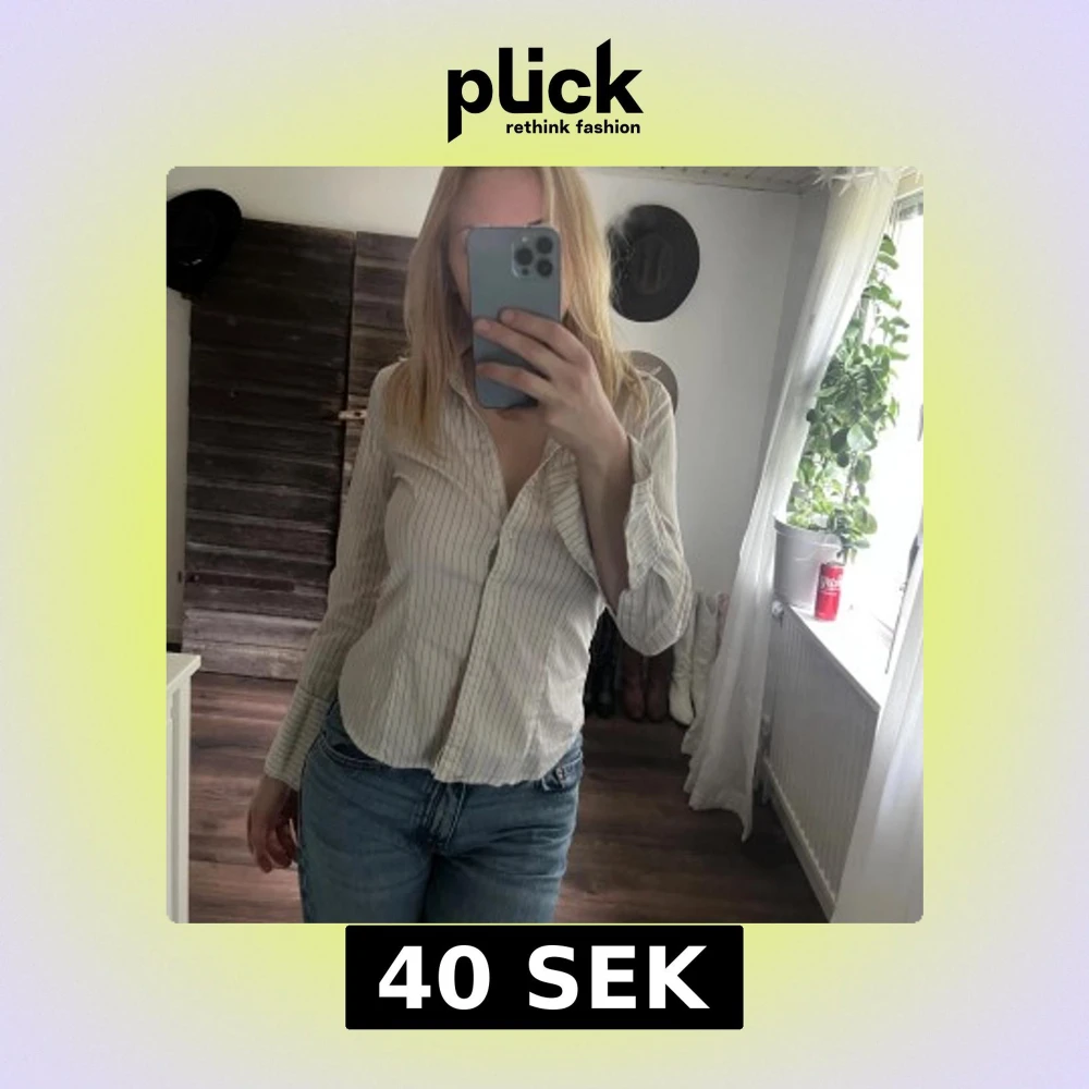 Snygg vit skjorta med tunna vertikala ränder i svart. Skjortan har lång ärm, klassisk krage och knäppning framtill. Passformen är normal och materialet känns lätt och skönt, perfekt till jeans eller kjol.