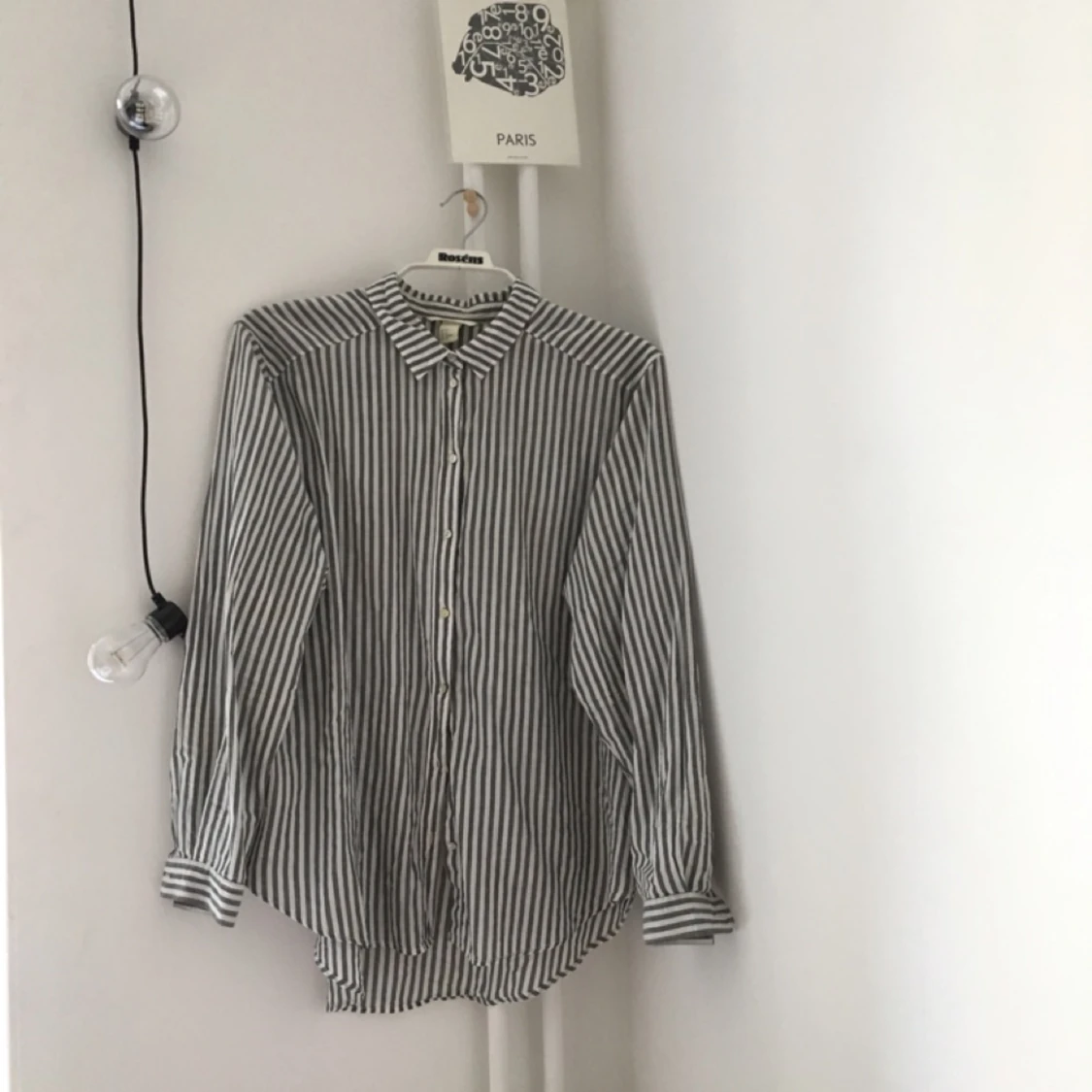 Grå/vit-randig skjorta som funkar både på större och mindre storlekar. Jag bar den lite oversized, vilket var supersnyggt! Möts gärna upp i Göteborg, annars tillkommer frakt. Har swish!