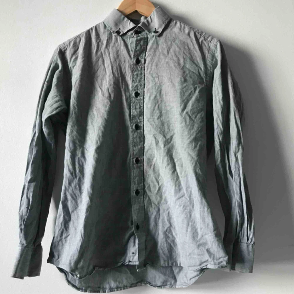 Svartvit-randig skjorta, skräddarsydd i Thailand, därför inget märke