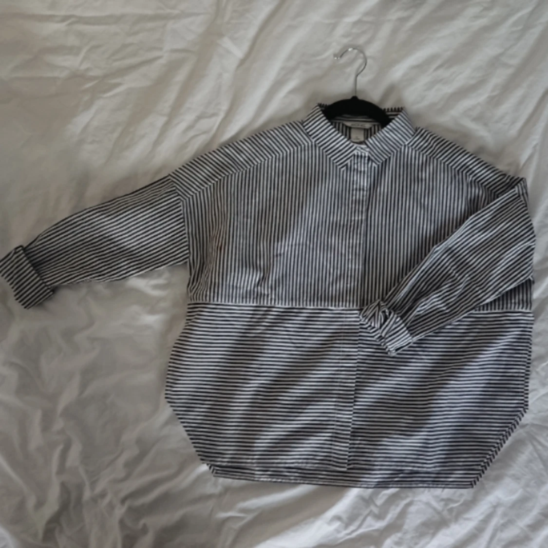 Boxy skjorta från Monki med slits på sidorna Tvättbara fläckar på höger sida, se bild 2 Längd (fram) 57cm Längd (bak) 59cm Omkrets 122cm Mötas upp i centrala Stockholm OK Frakt (extra kostnad) OK