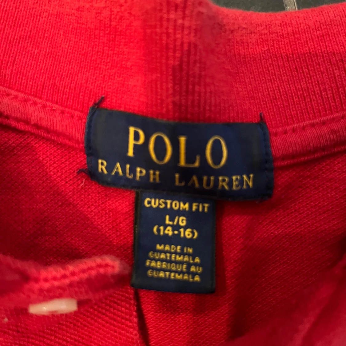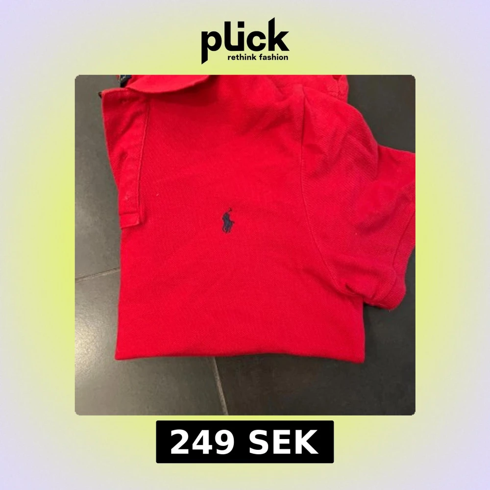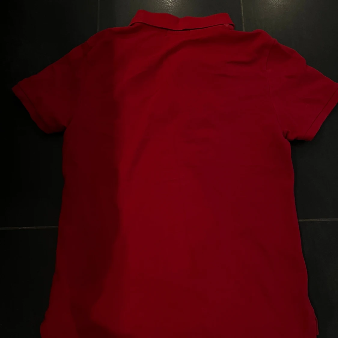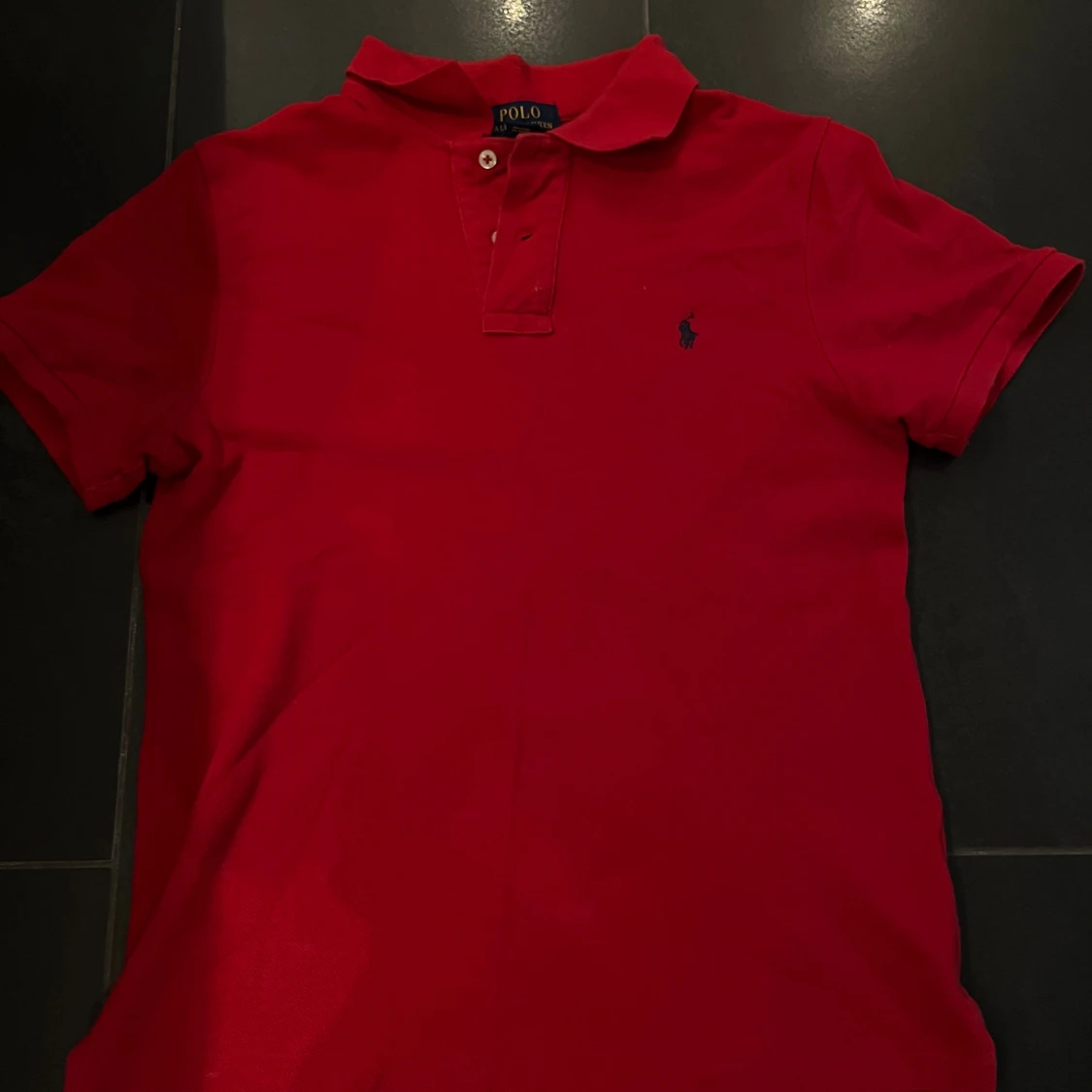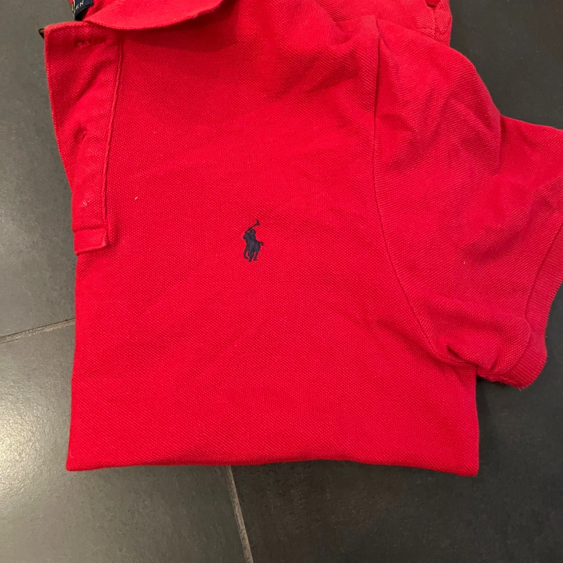 Klassisk röd pikétröja från Polo Ralph Lauren med blå broderad logga på bröstet. Tröjan har korta ärmar, krage och knappar framtill. Tillverkad i bomull och har en snygg, enkel design som passar perfekt till jeans eller shorts.