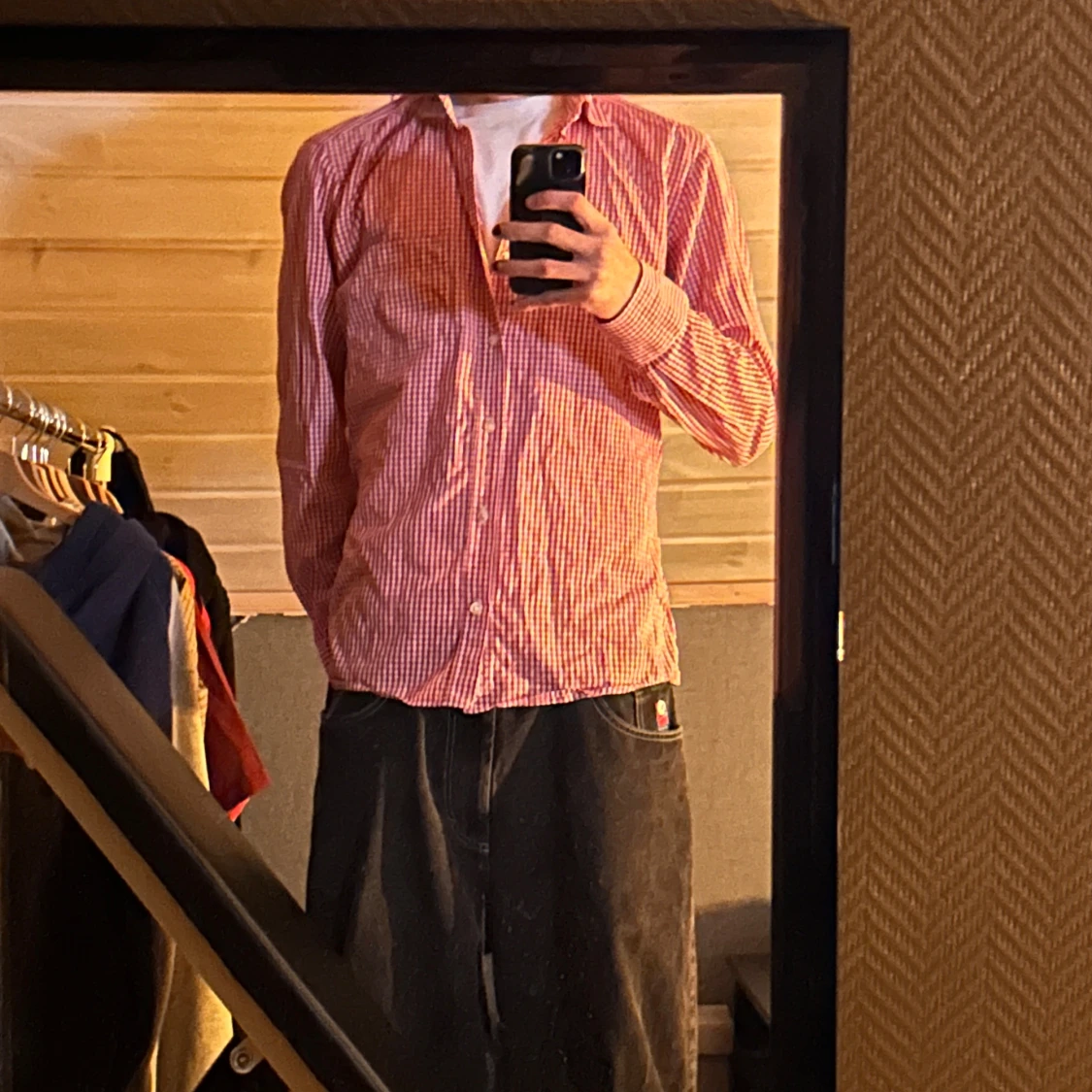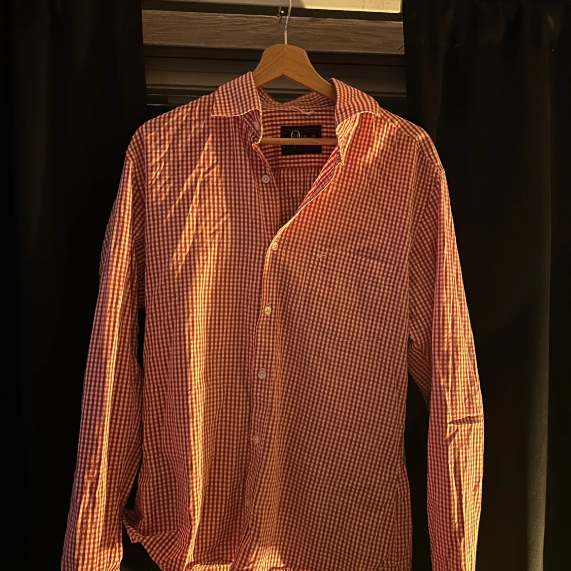 Snygg röd och vit rutig skjorta från Oscar of Sweden. Klassisk krage, långärmad och med knäppning framtill. Skjortan har en bröstficka och är i ett lätt och skönt bomullstyg. Perfekt för dig som gillar en avslappnad men ändå stilren look.