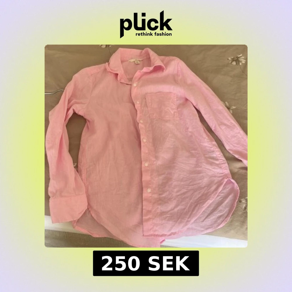 Ljusrosa skjorta från H&M i linnemix, storlek XS. Klassisk modell med krage, bröstficka och knappar framtill. Långärmad och luftig, perfekt för varmare dagar. Snygg att bära både öppen och knäppt.
