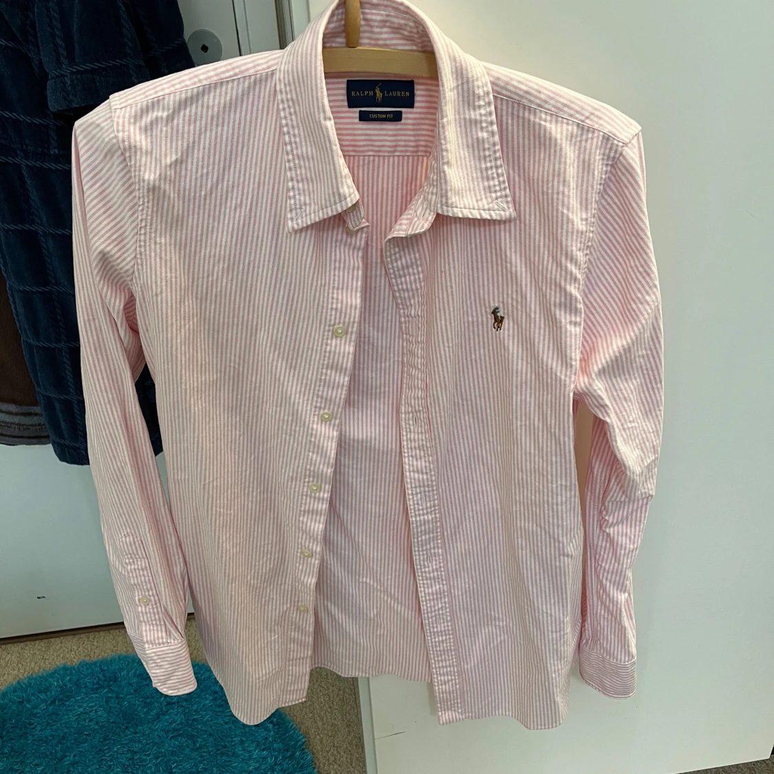 Säljer en snygg och stilren rosa och vit randig skjorta från Ralph Lauren. Skjortan är i custom fit och har långa ärmar. Den är gjord i bomull och har klassiska knappar framtill. Perfekt för både vardag och fest!