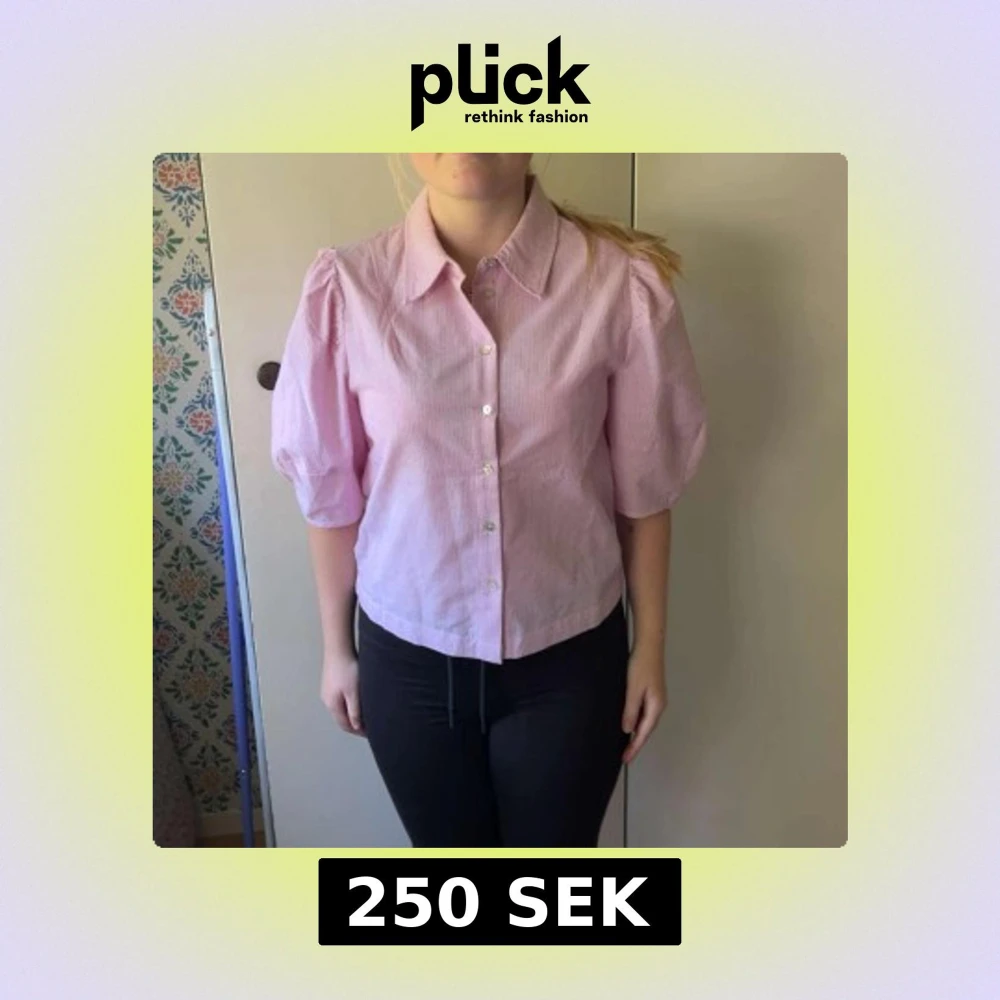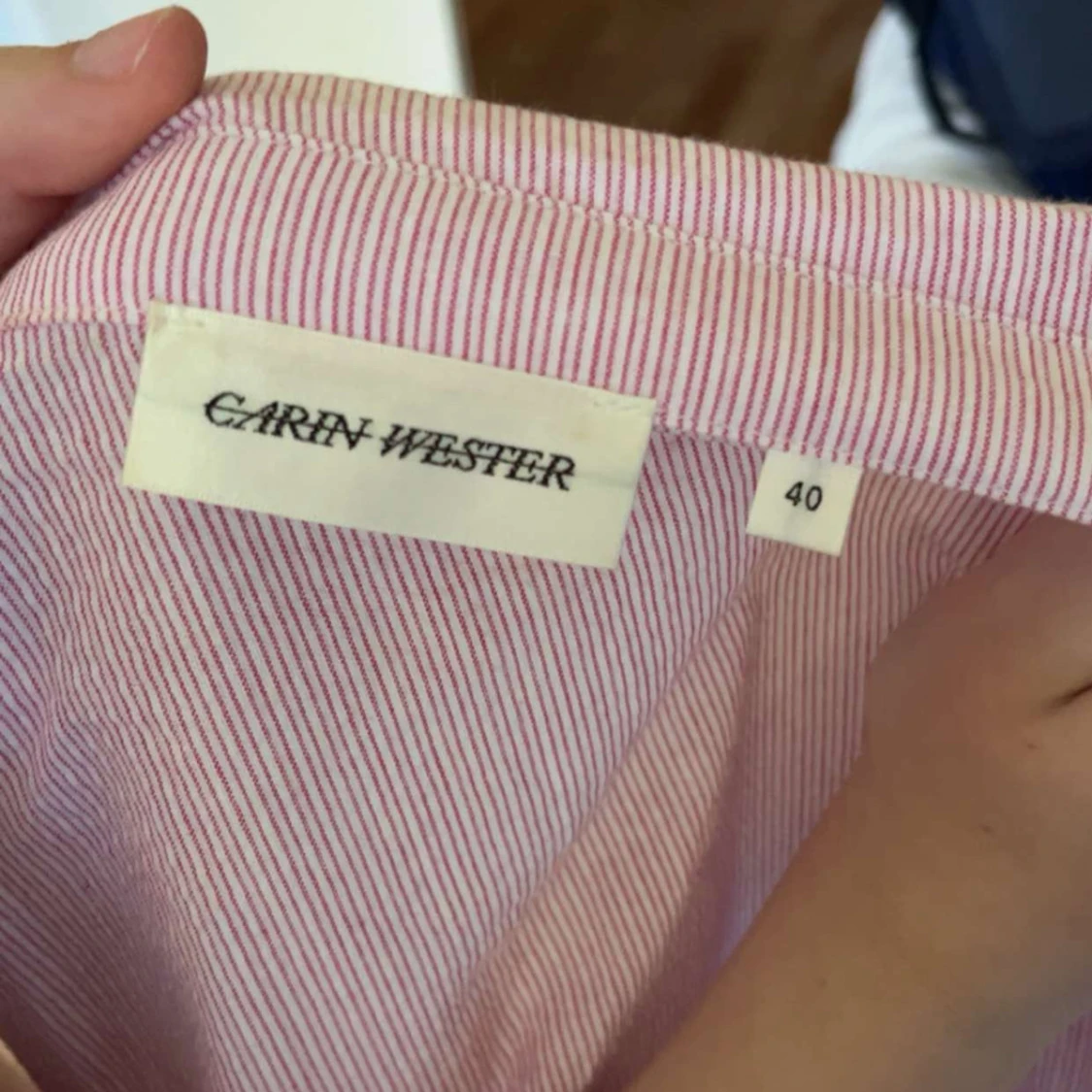 Säljer en rosa och vit randig skjorta från Carin Wester i storlek 40. Skjortan har puffiga korta ärmar, klassisk krage och knäppning framtill. Perfekt för dig som gillar en trendig och söt look med lite volym på axlarna.