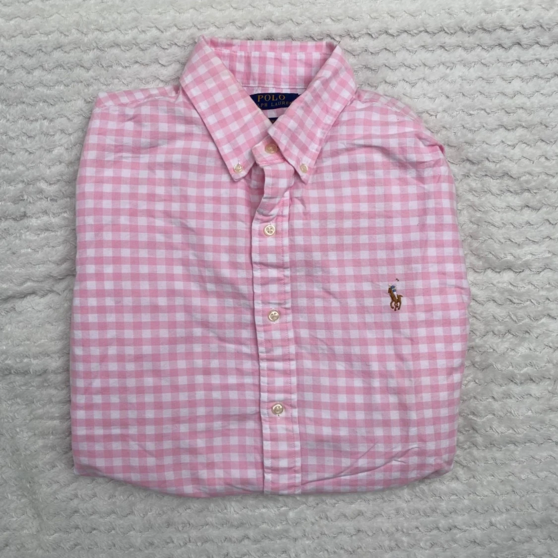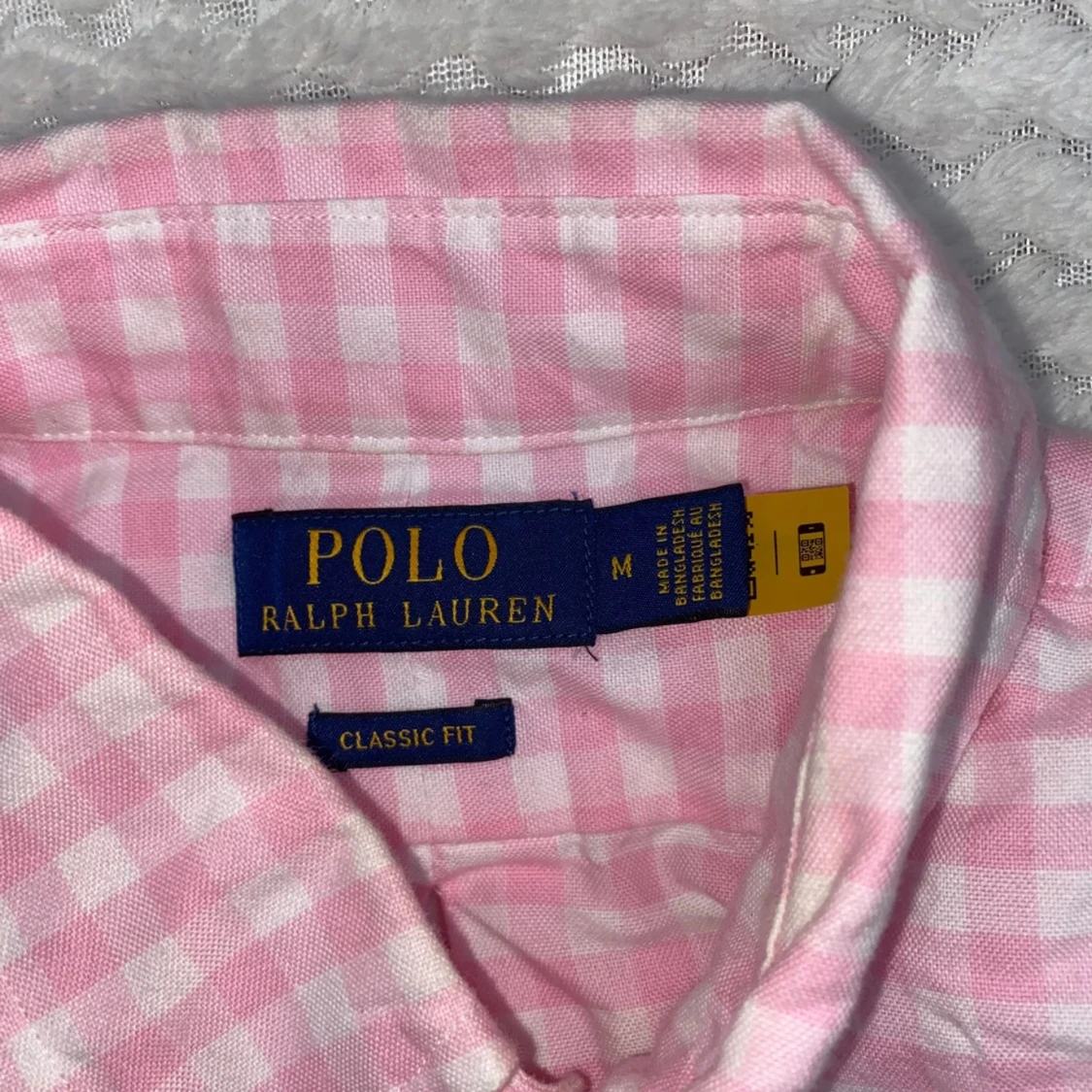 Säljer en klassisk rosa och vit rutig skjorta från Polo Ralph Lauren i storlek M. Skjortan har lång ärm, knappar framtill och broderad logga på bröstet. Perfekt för dig som gillar en tidlös och fräsch stil.