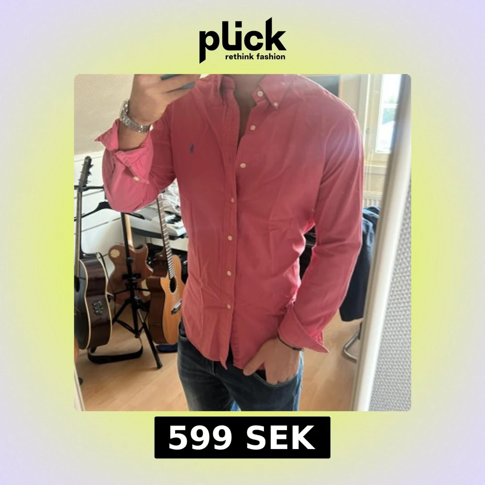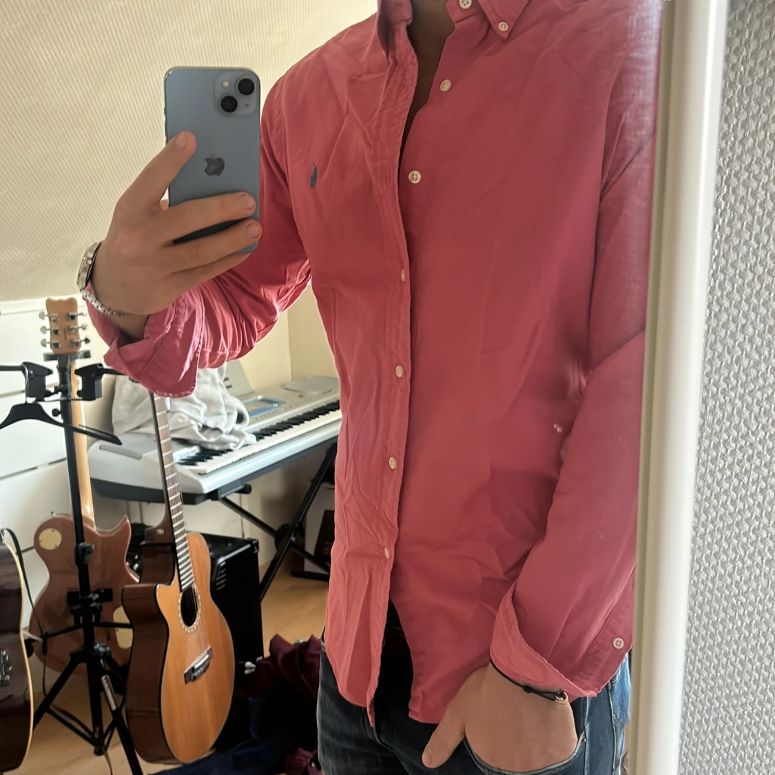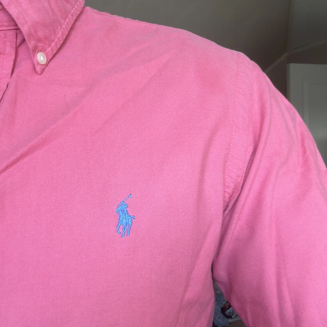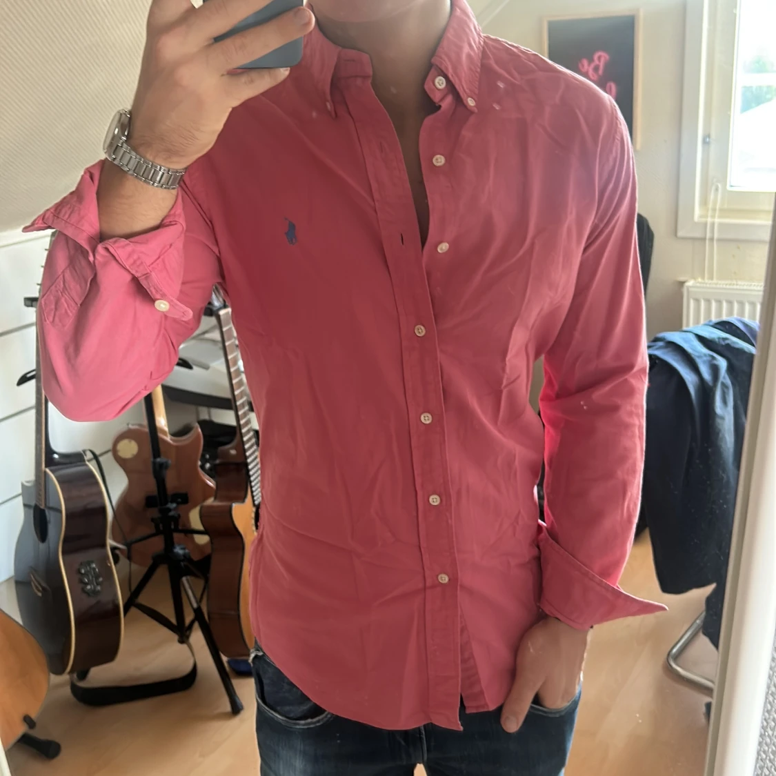 Snygg rosa skjorta från Ralph Lauren med klassisk krage och knappar framtill. Den har en broderad logga i blått på bröstet. Perfekt för en stilren look.