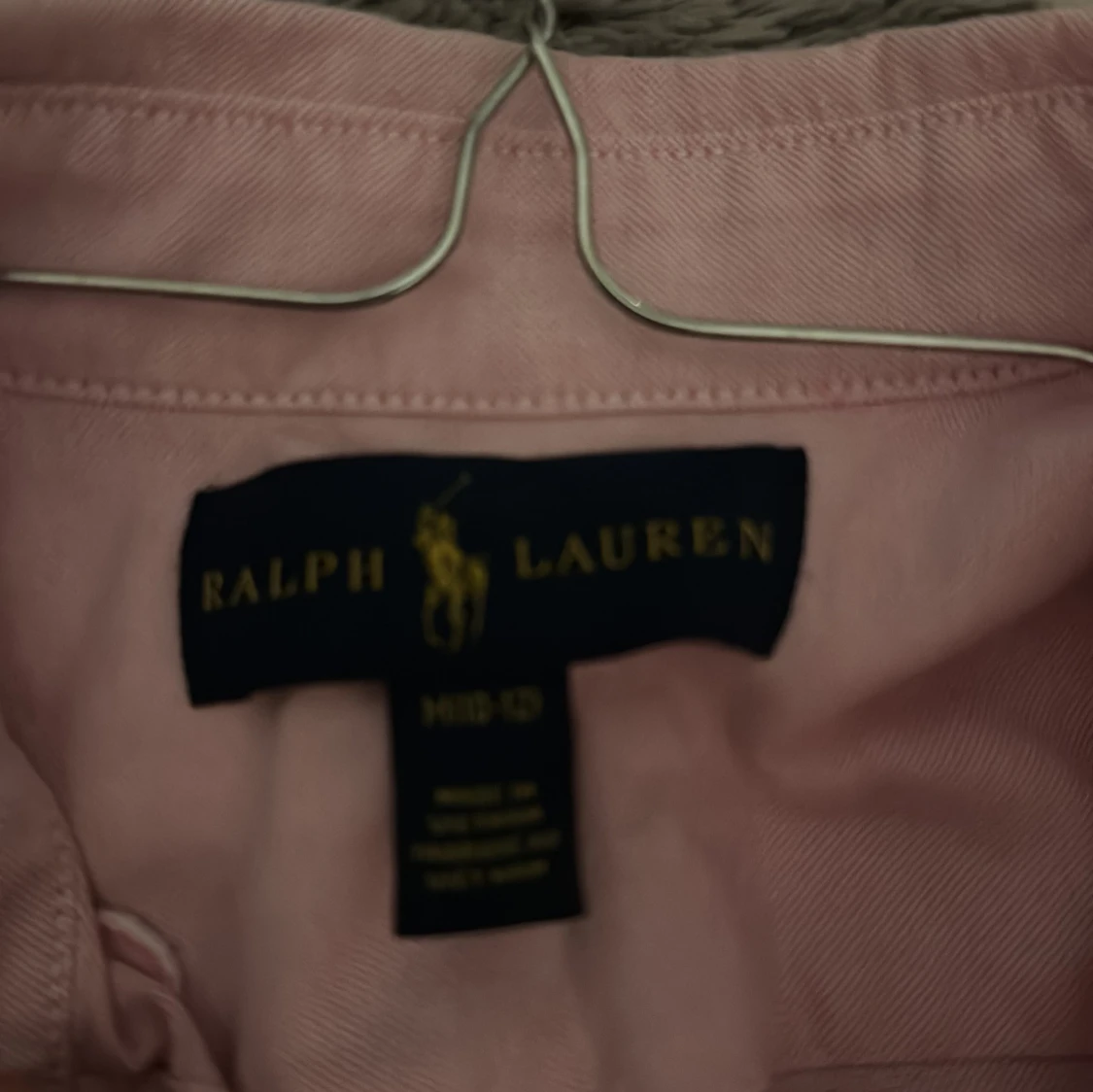 Säljer en klassisk rosa skjorta från Ralph Lauren med broderad logga på bröstet. Skjortan har lång ärm, knappar framtill och är gjord i mjuk bomull. Perfekt för dig som gillar stilrena och tidlösa plagg.